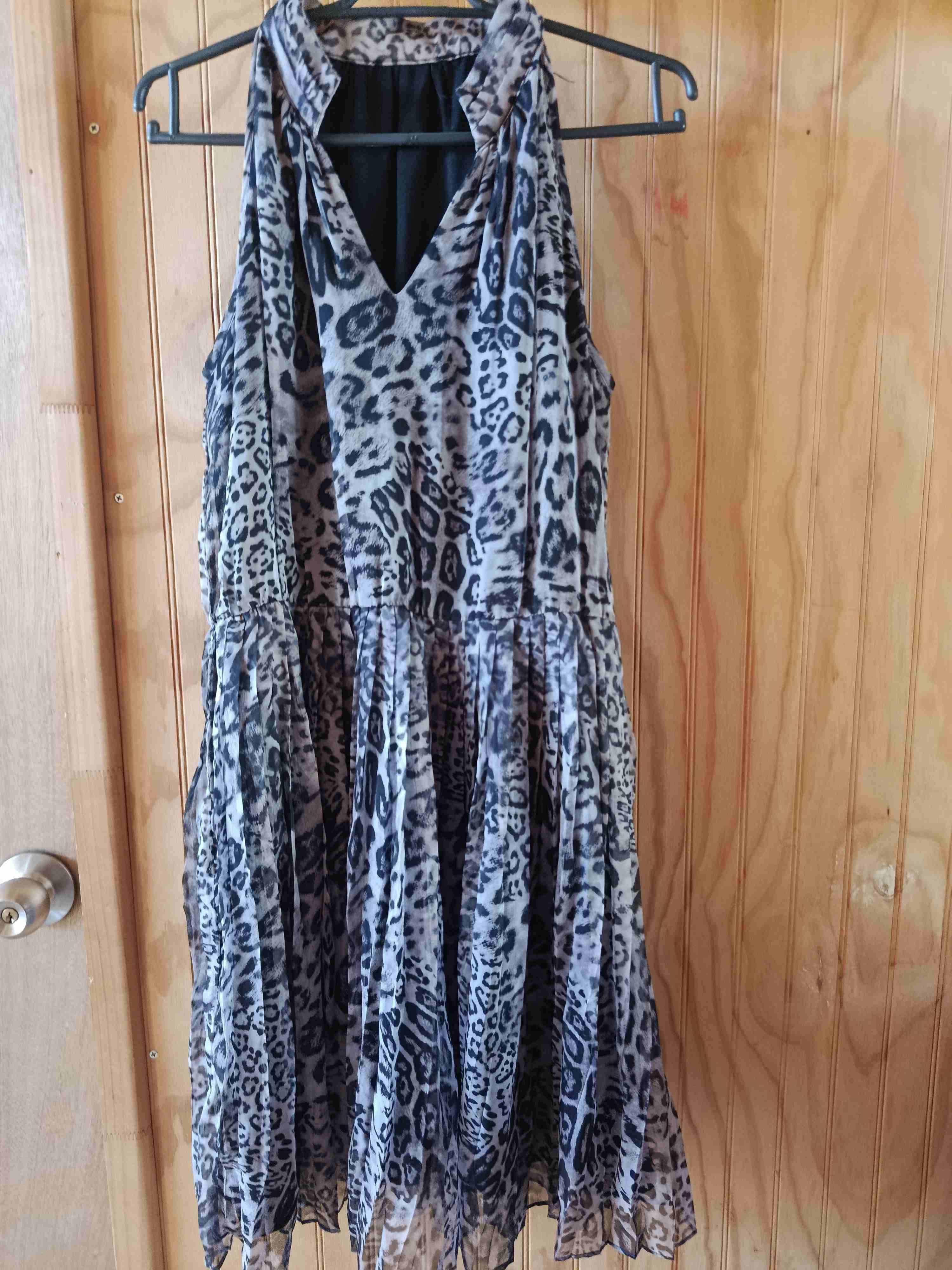 Elegante vestido con diseño de animal print. Perfecto para ocasiones especiales. Está en buen estado. Talla M
