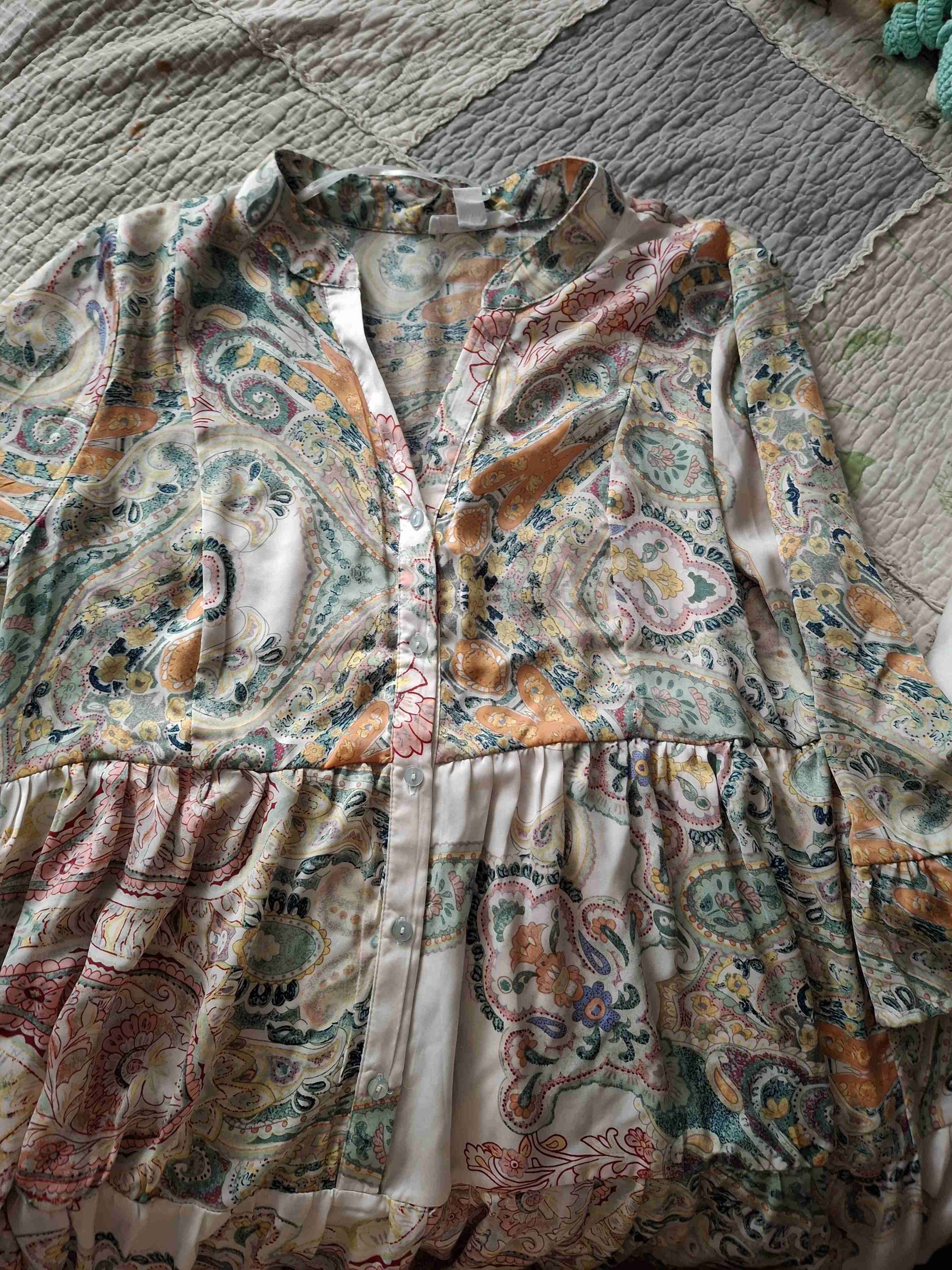 Hermosa blusa con diseño colorido y alegre, ideal para días de primavera. Se encuentra en buen estado.
