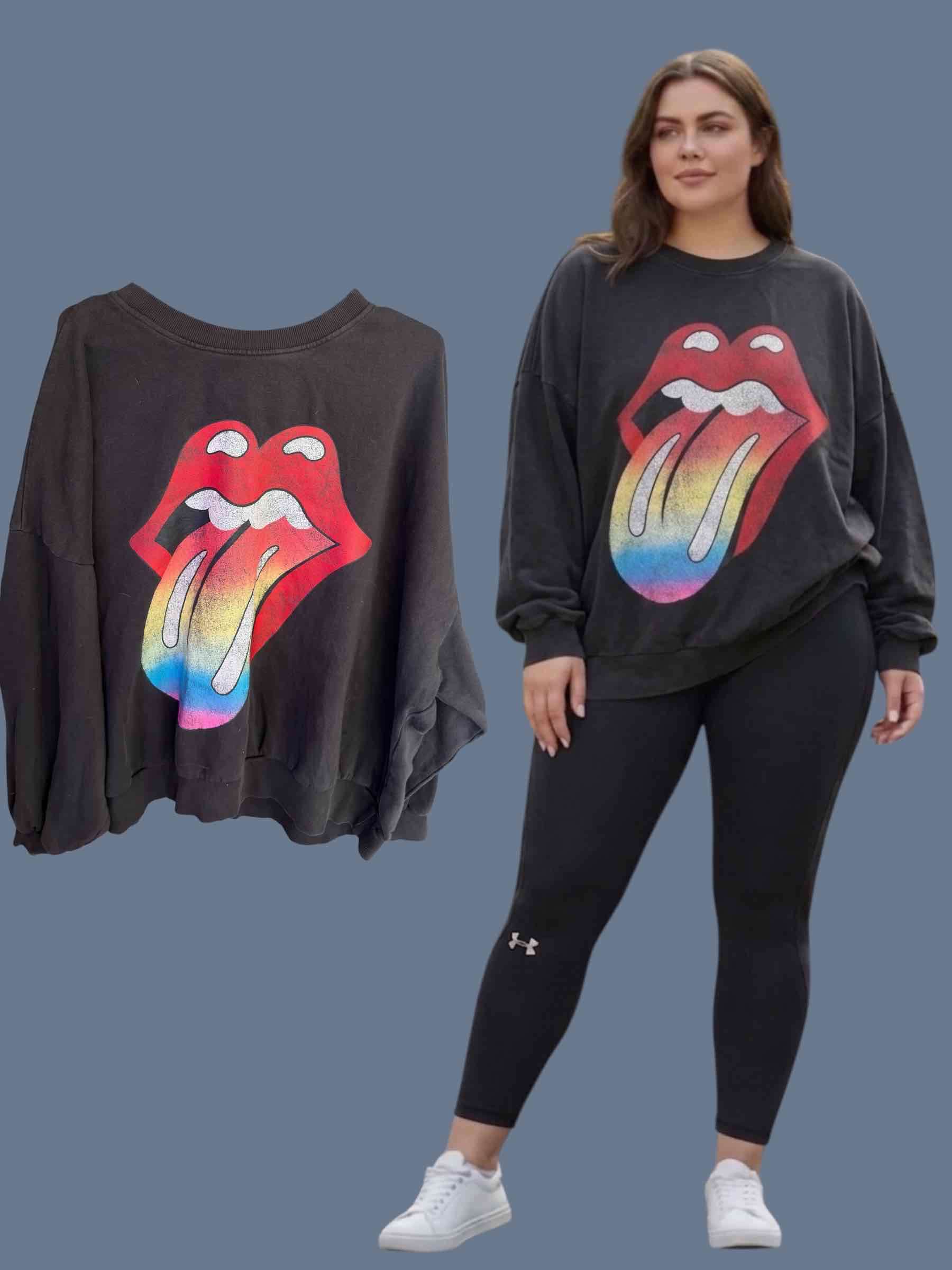 Polerón negro con diseño gráfico colorido de los Rolling Stones. Cómodo y con estilo relajado, ideal para uso diario. XL