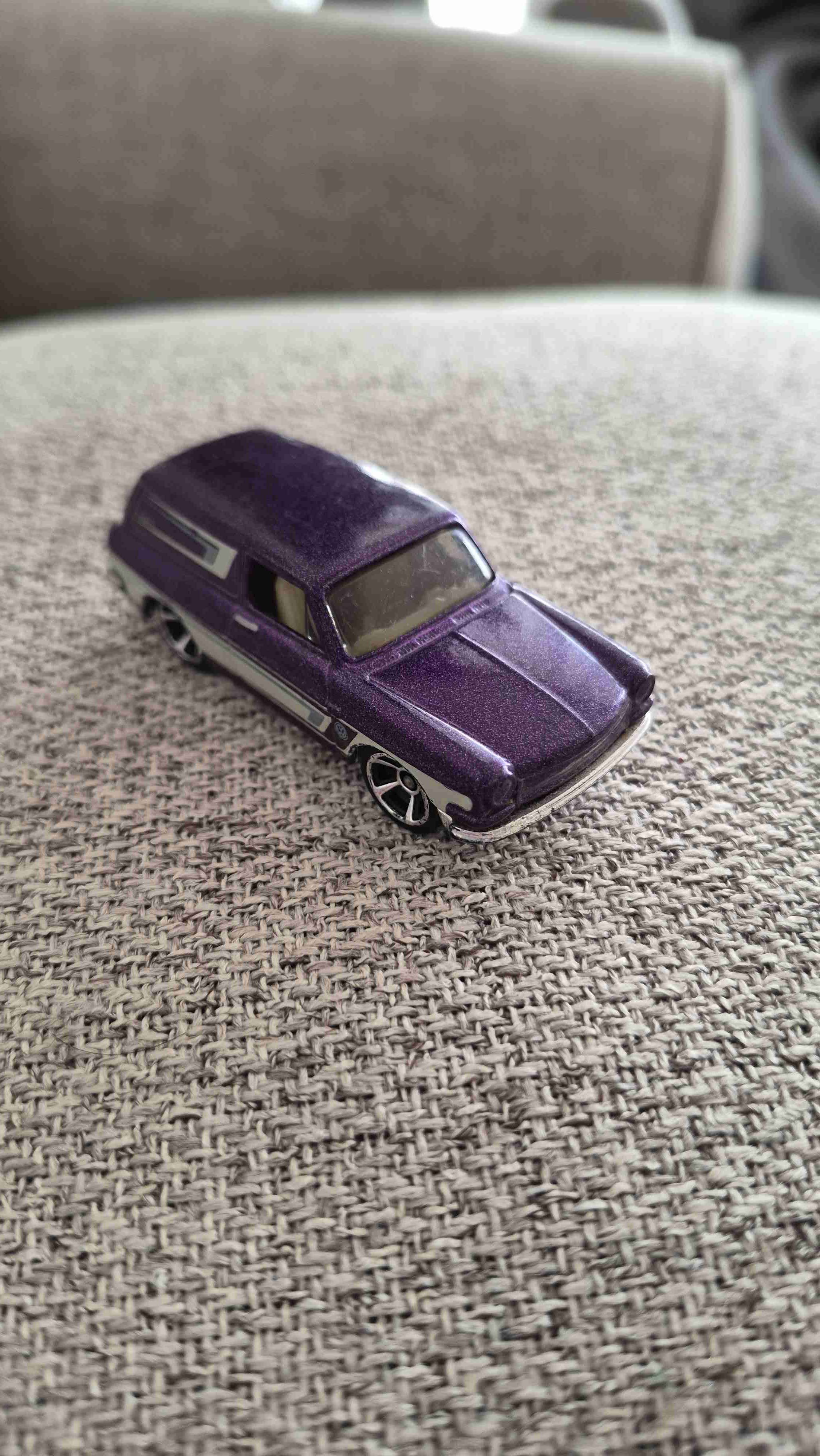 Modelo de auto a escala en color morado. Ideal para coleccionistas o para jugar. En buen estado general.