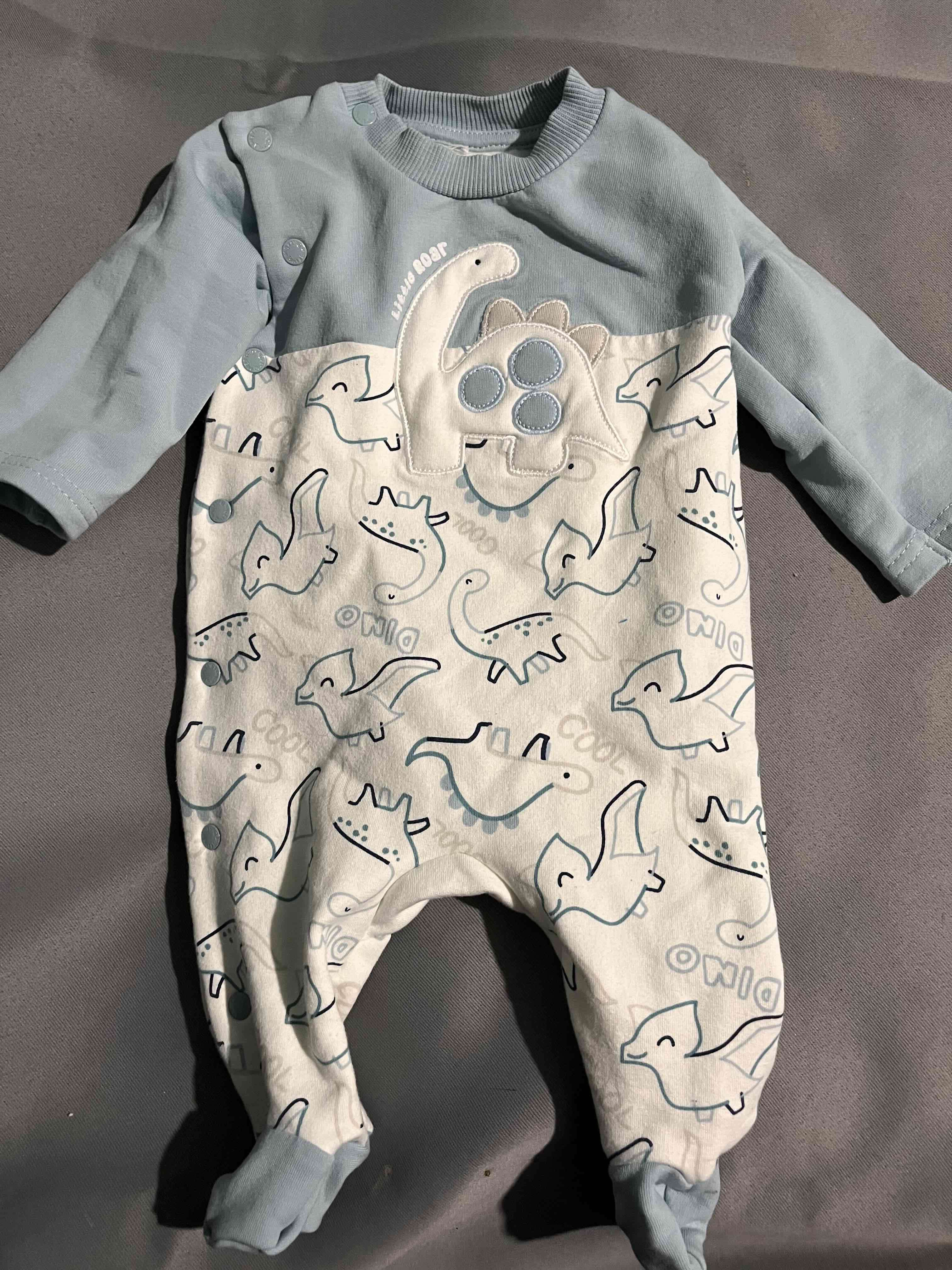 Enterito para bebé rn, en color azul con diseño de dinosaurios. Ideal para mantener a tu bebé cómodo y abrigado.