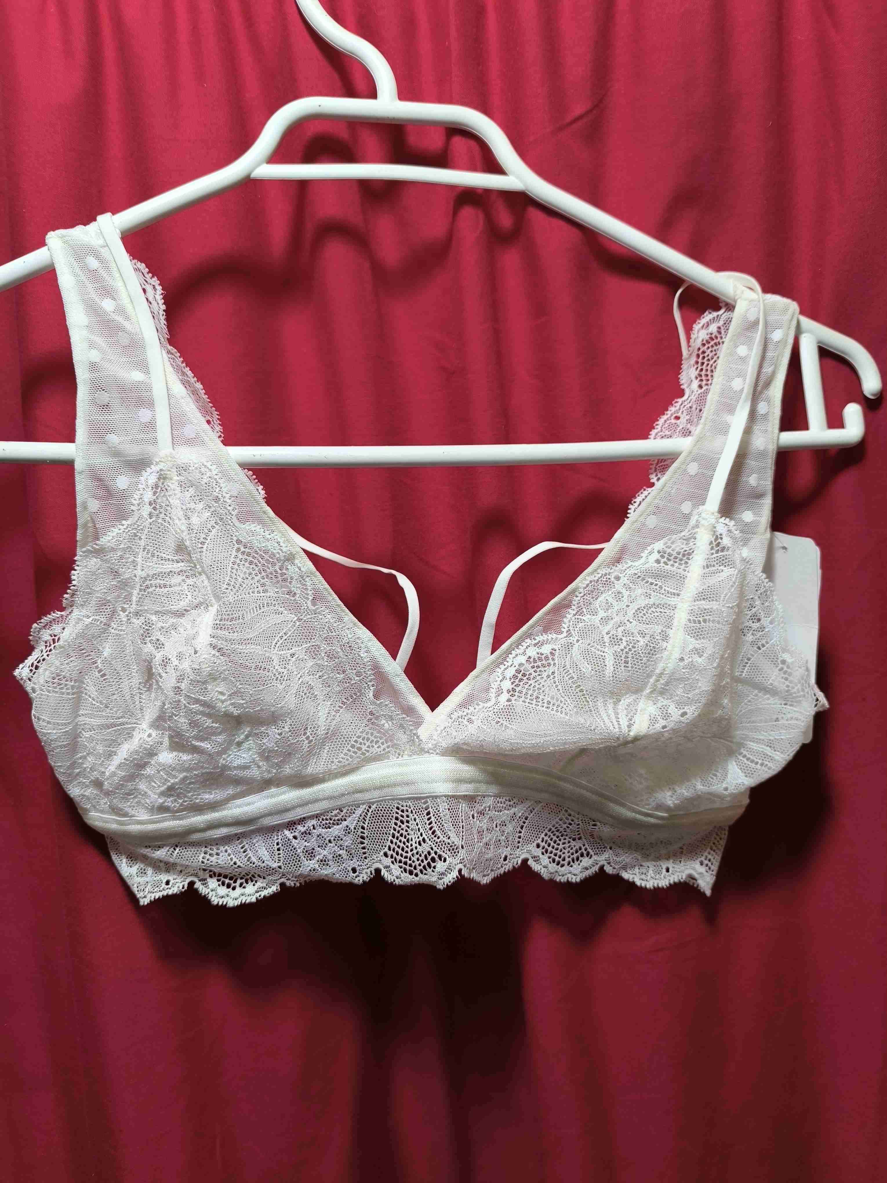 Bralette de encaje blanco Leonisa, estilo romántico y delicado. Perfecto para uso diario o ocasiones especiales.