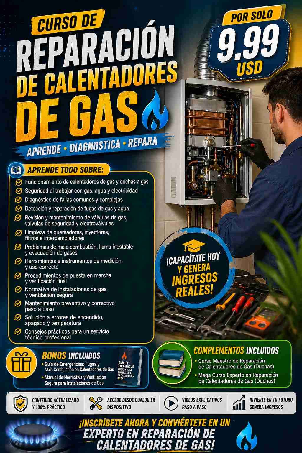 🚨 **¡OPORTUNIDAD REAL DE GENERAR INGRESOS!** 🚨 ¿Quieres aprender un oficio con **alta demanda** y empezar a ganar dinero rápido? 💰 🔥 **Curso de Reparación de Calentadores de Gas** 🔥 Conviértete en un técnico capacitado y aprende paso a paso: ✔ Diagnóstico de fallas ✔ Reparación de fugas de gas y agua ✔ Mantenimiento completo de equipos ✔ Seguridad y normativas ✔ Uso de herramientas profesionales 💡 **Ideal para principiantes y técnicos que quieran especializarse** 🎯 **¿Qué obtienes?** ✅ Contenido 100% práctico ✅ Acceso desde cualquier dispositivo ✅ Bonos exclusivos incluidos ✅ Conocimiento listo para generar ingresos 💲 **TODO por solo 12.990 pesos** ⚡ **No necesitas experiencia previa, solo ganas de aprender y avanzar* 🚀 **¡INSCRÍBETE HOY Y EMPIEZA A GENERAR INGRESOS DESDE YA!** 📩 Escríbeme ahora por interno o deja un mensaje para más información
