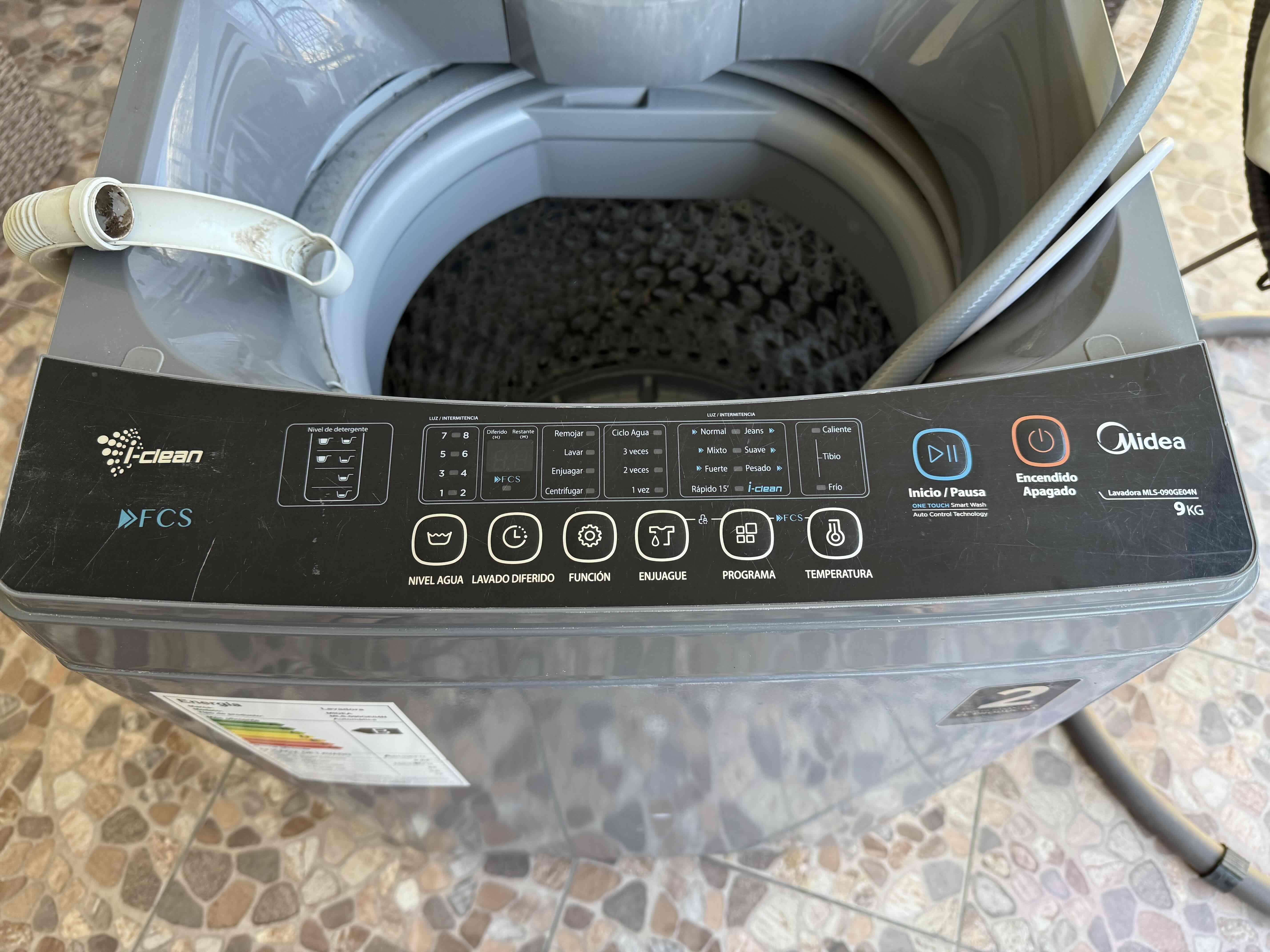 Lavadora Midea de 9 kg, Funciona correctamente y en buen estado, con leves signos de uso. La vendo muy barata debido a que solo hay que cambiarle la manguera corrugada para el desagüe debido a que se cuenta rota.