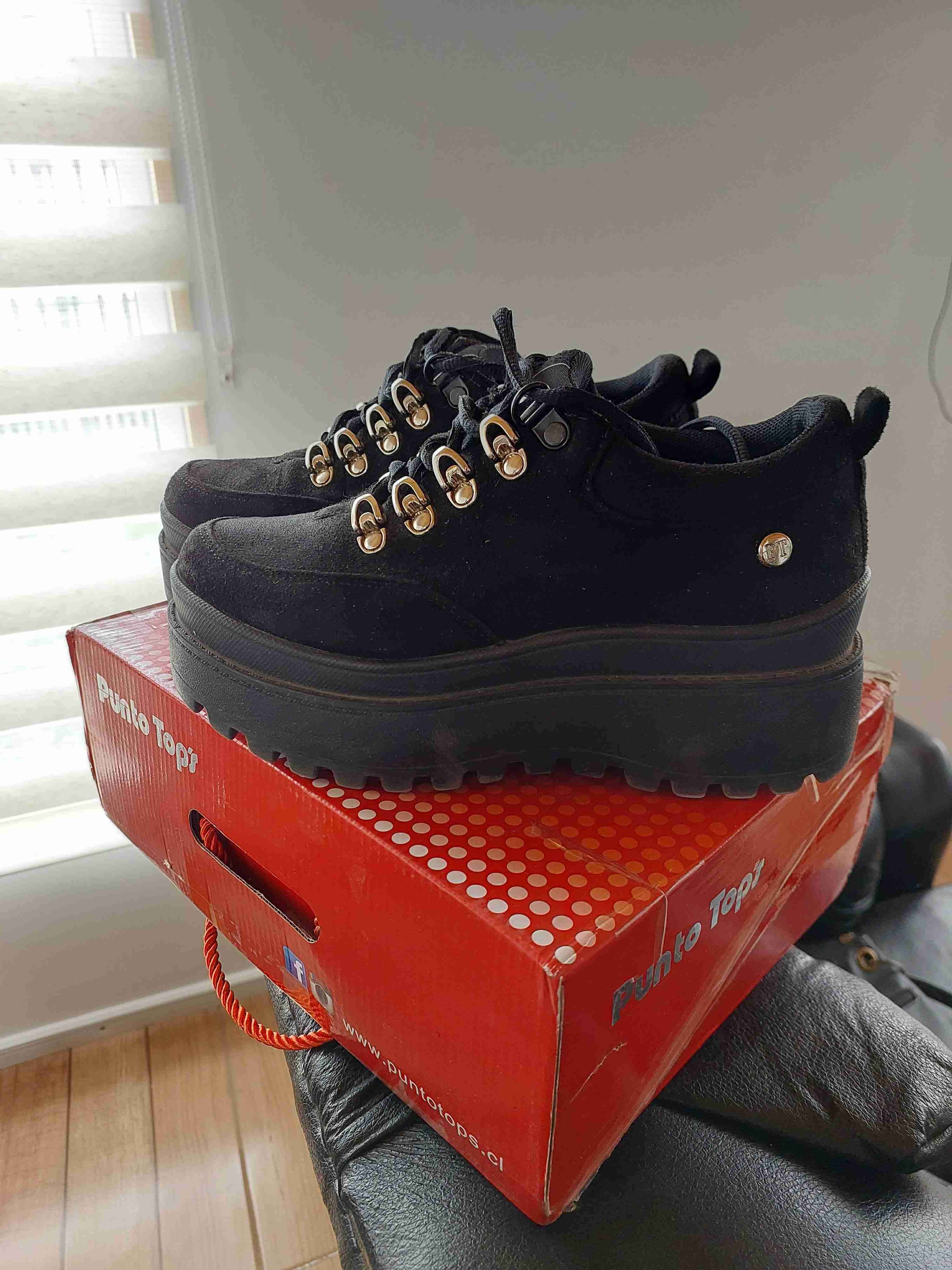Cómodas zapatillas negras de estilo casual con plataforma. Ideales para el uso diario, en buen estado. Número 36.