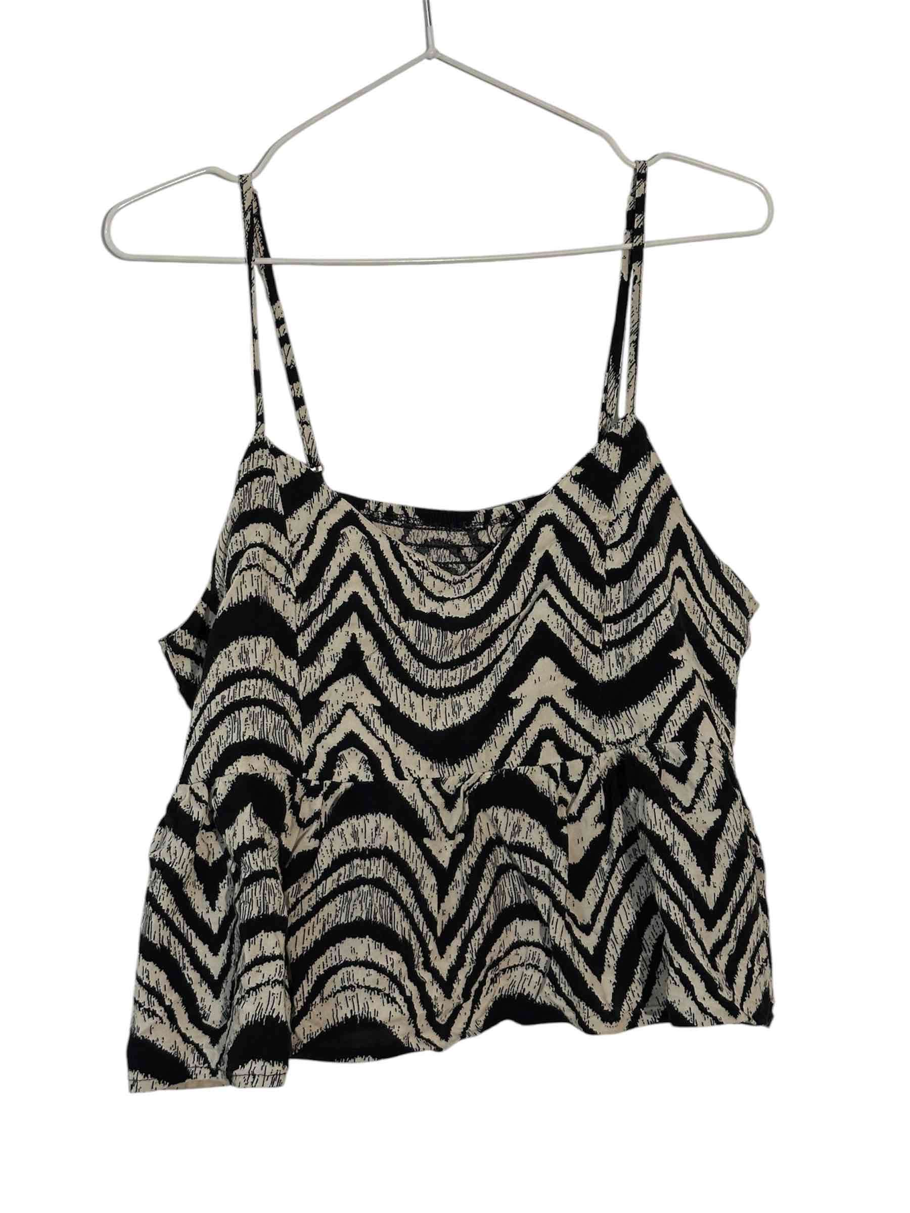 Top veraniego con tirantes y estampado zigzag. En buen estado, ideal para días casuales.