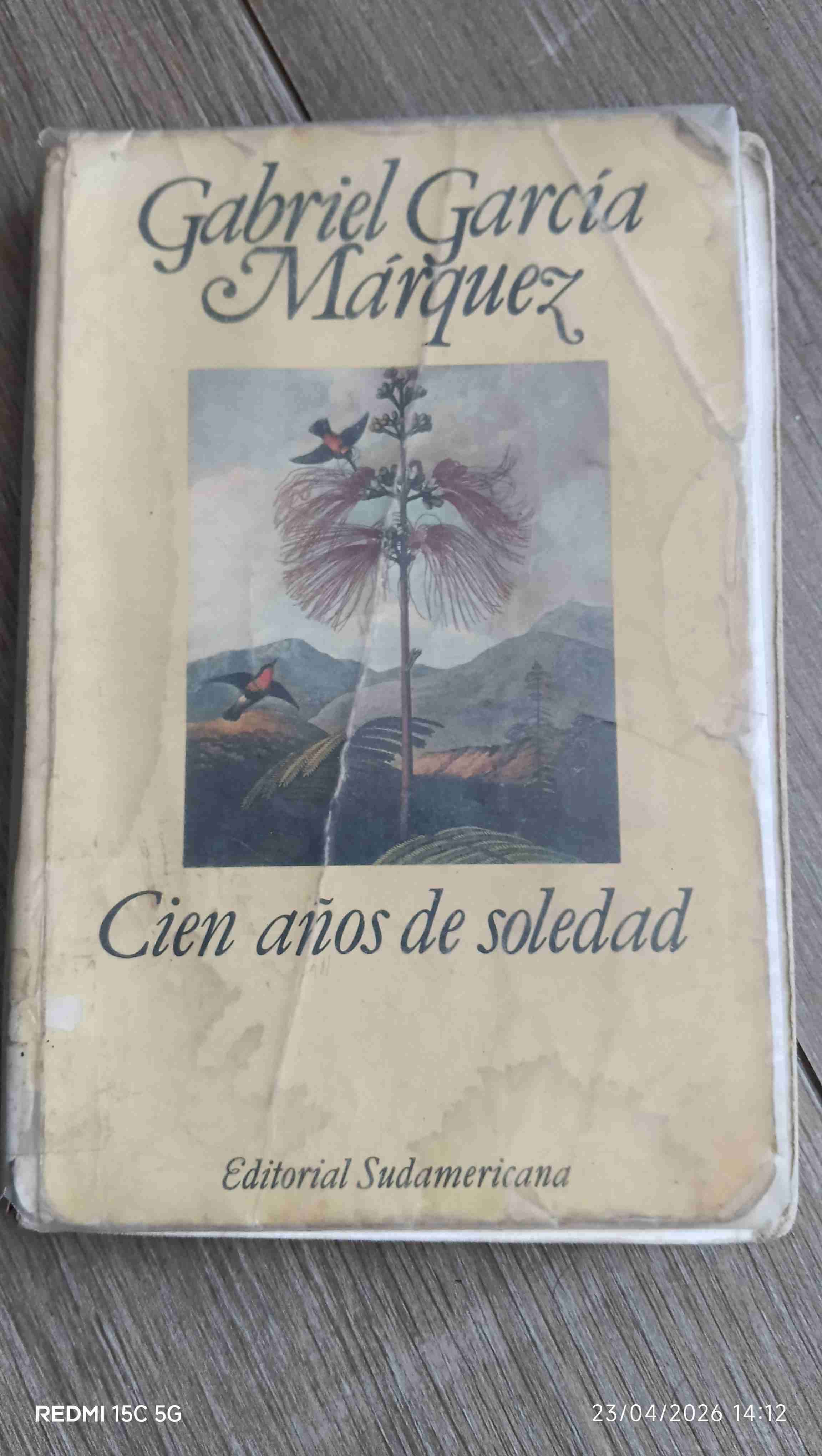 Ejemplar de 'Cien Años de Soledad' con signos de uso y desgaste visible. Ideal para coleccionistas o fans de Gabriel García Márquez.
