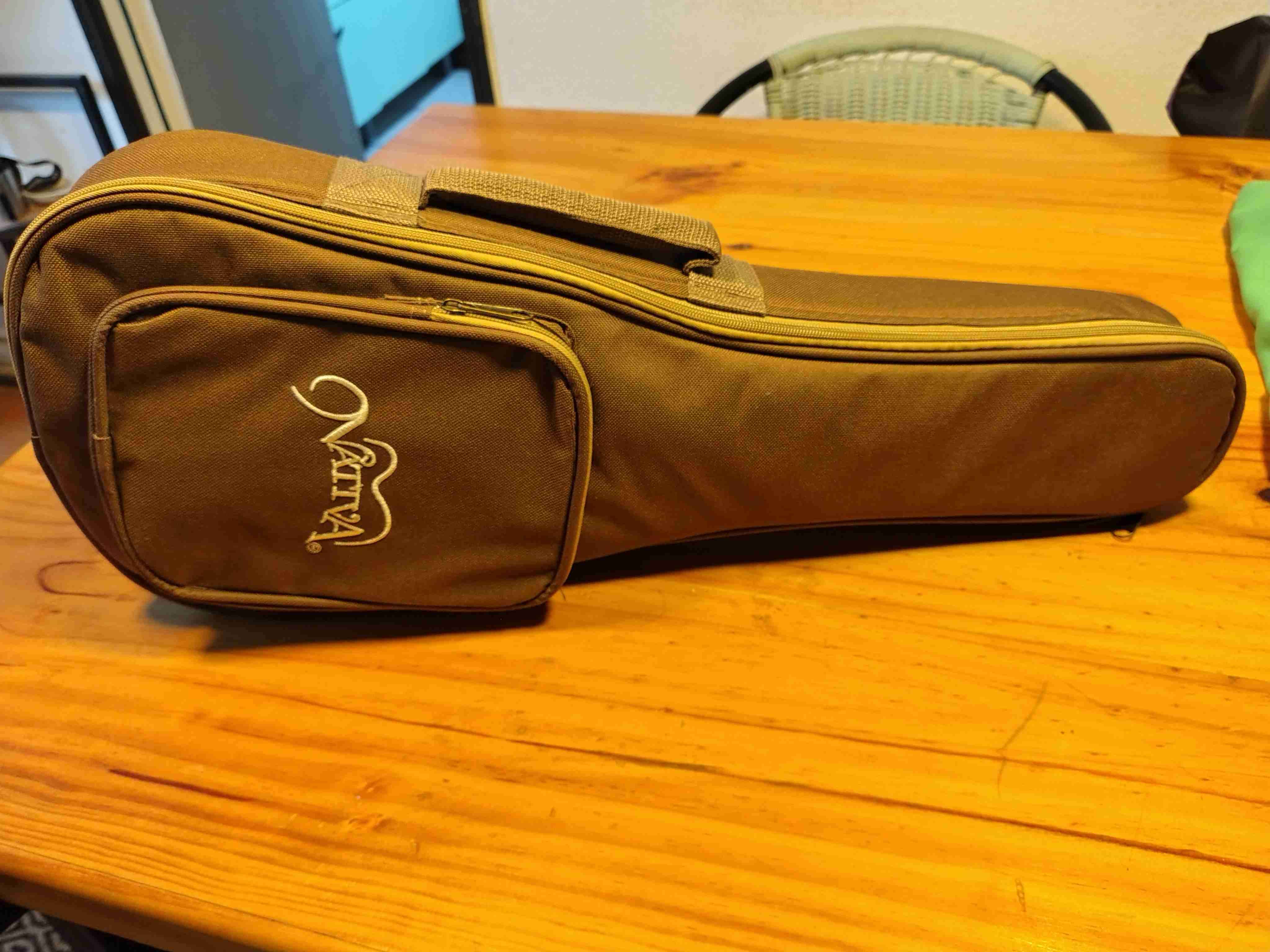 Ukelele con estuche acolchado, color marrón. Ideal para protección en el transporte. Nuevo.