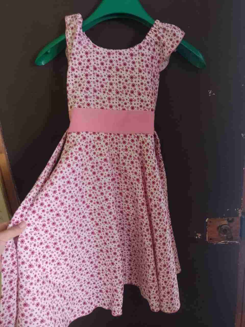 Vestido infantil talla 6 con estampado floral rosa y cinta decorativa. Ideal para ocasiones especiales. En buen estado. Eso y mucho más en una bolsa grande con abrigos talla 4