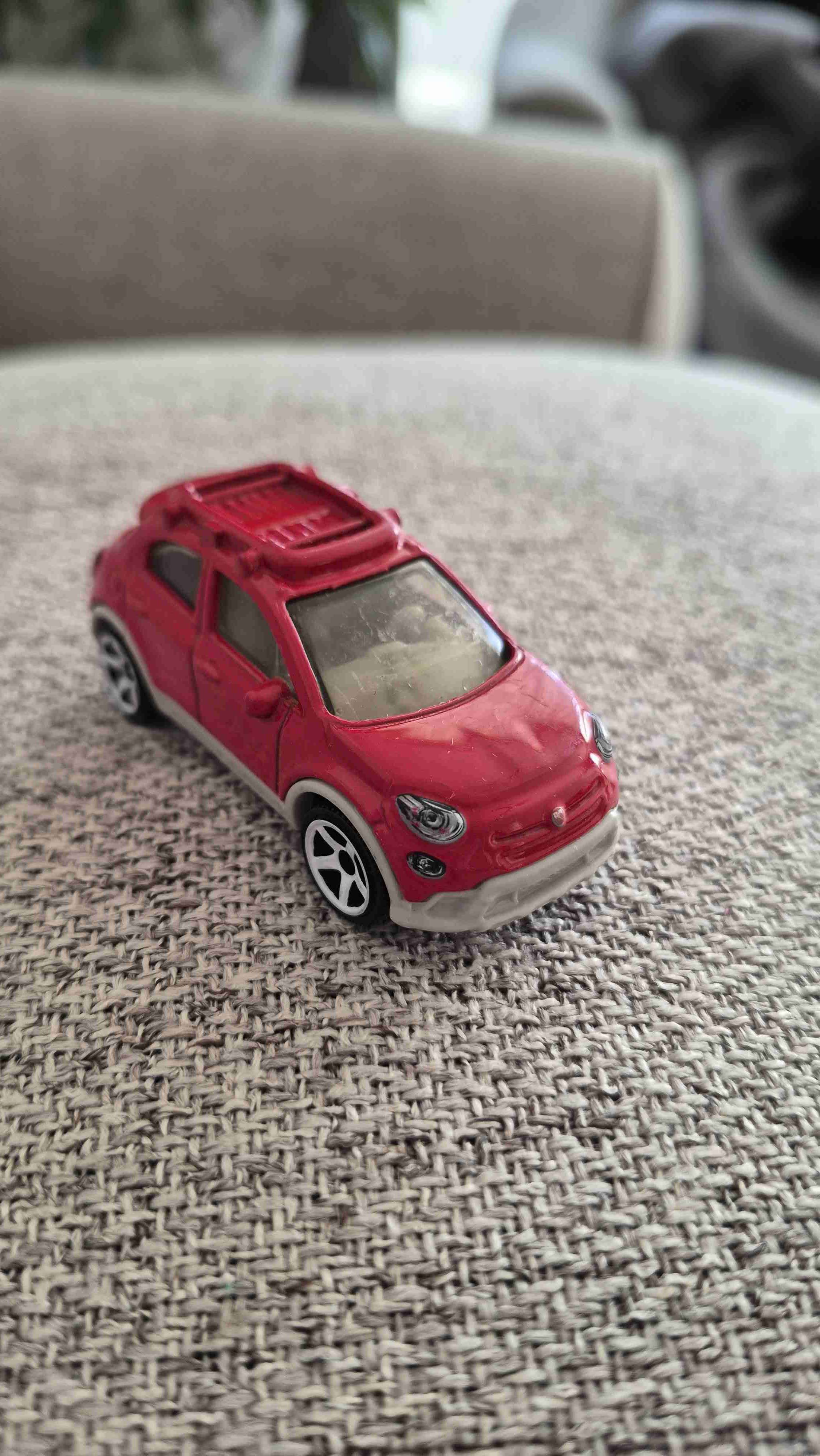 Pequeño auto de juguete rojo, ideal para coleccionar o para juegos infantiles.