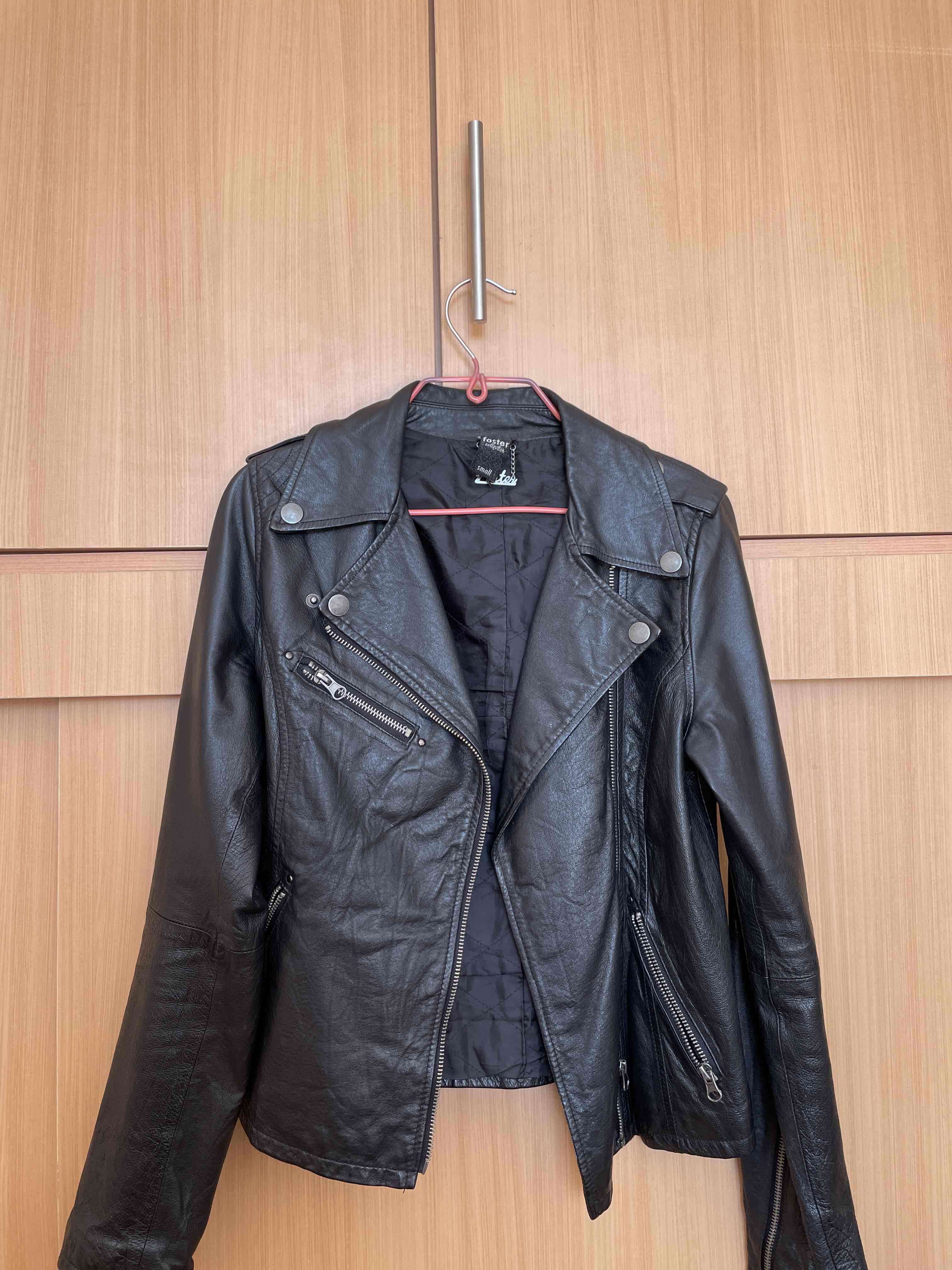Chaqueta de cuero negra estilo motociclista en buen estado. Perfecta para un look casual y moderno.