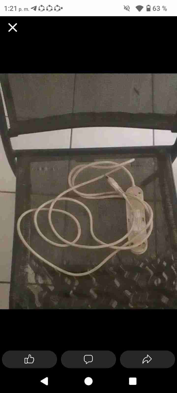 Alargador de energía en buen estado. Ideal para el hogar o la oficina. Longitud suficiente para varias conexiones.