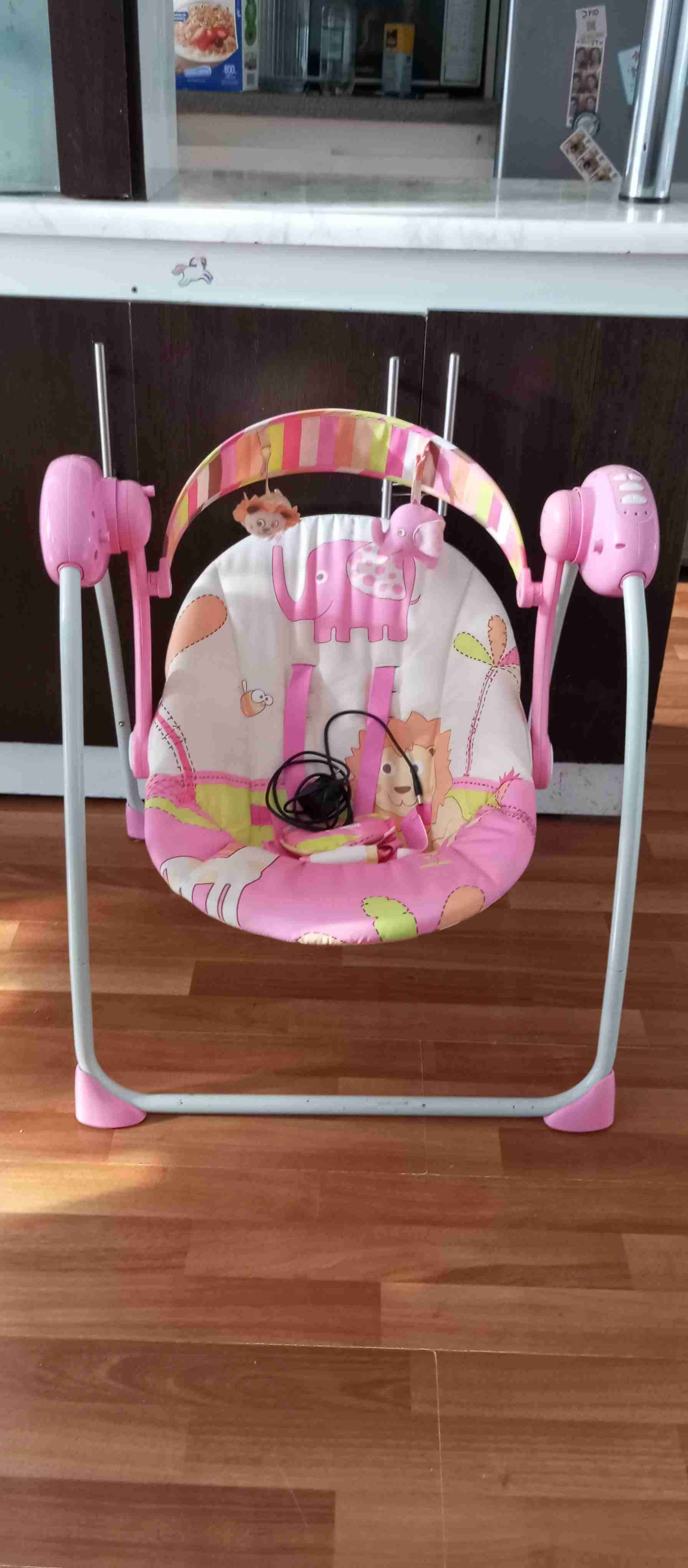 Columpio para bebé con música y diseño colorido. En buen estado, ideal para entretener a los más pequeños en casa.