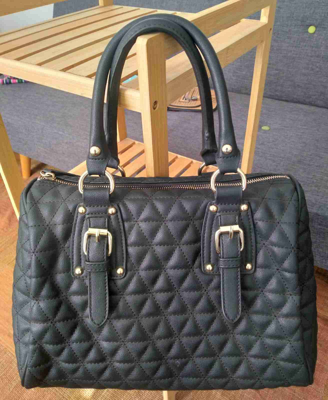 Bolso estilo Bowling en color negro, ideal para llevar todo con elegancia. Acabado acolchado perfecto para el día a día. Ecocuero