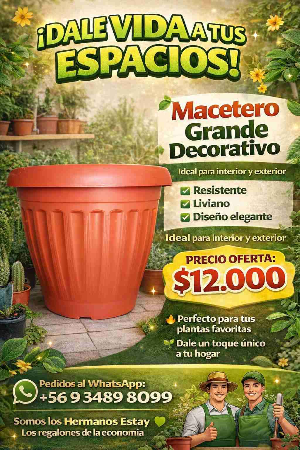 Macetero grande ideal para interior y exterior. Resistente y liviano, perfecto para tus plantas favoritas.