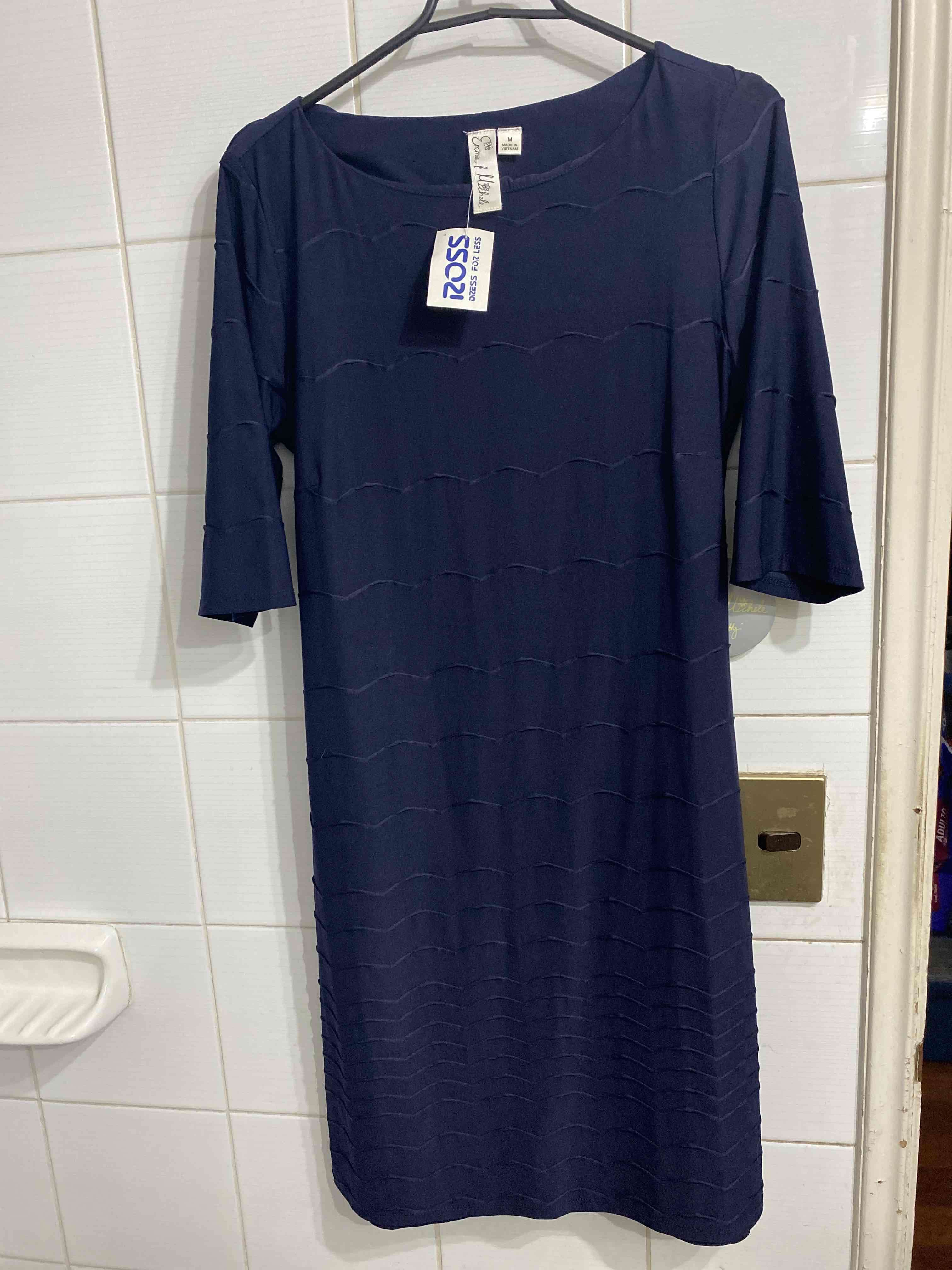 Elegante vestido azul marino con diseño de onda. Perfecto para ocasiones casuales o formales. Talla M