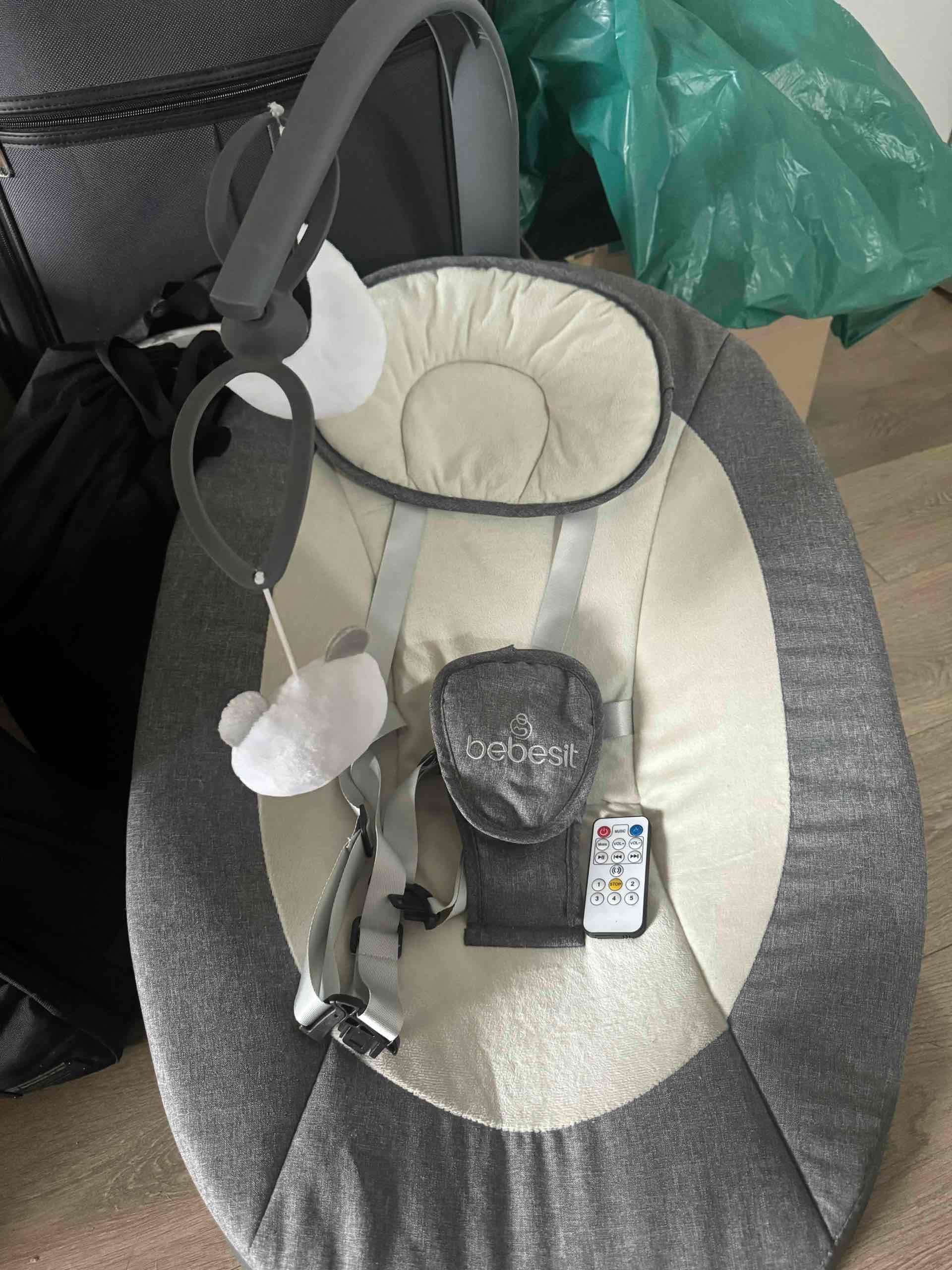 Silla mecedora para bebé con cinturón de seguridad. Incluye móvil de juguetes, ideal para relajar al bebé. Nunca usada. Se entrega sin caja