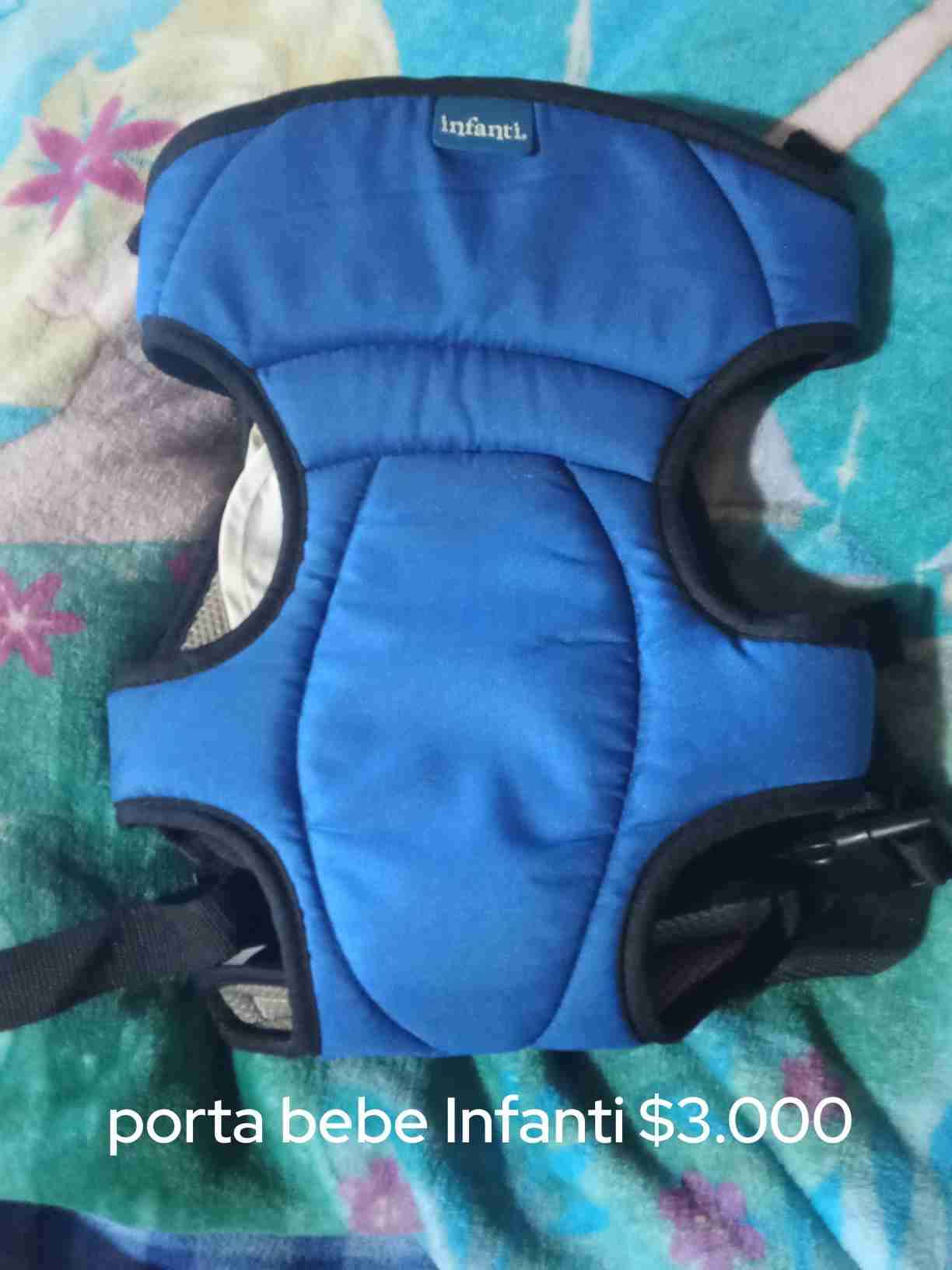 Cómodo portabebé Infanti en color azul. Ideal para paseos y actividades diarias. En buen estado.