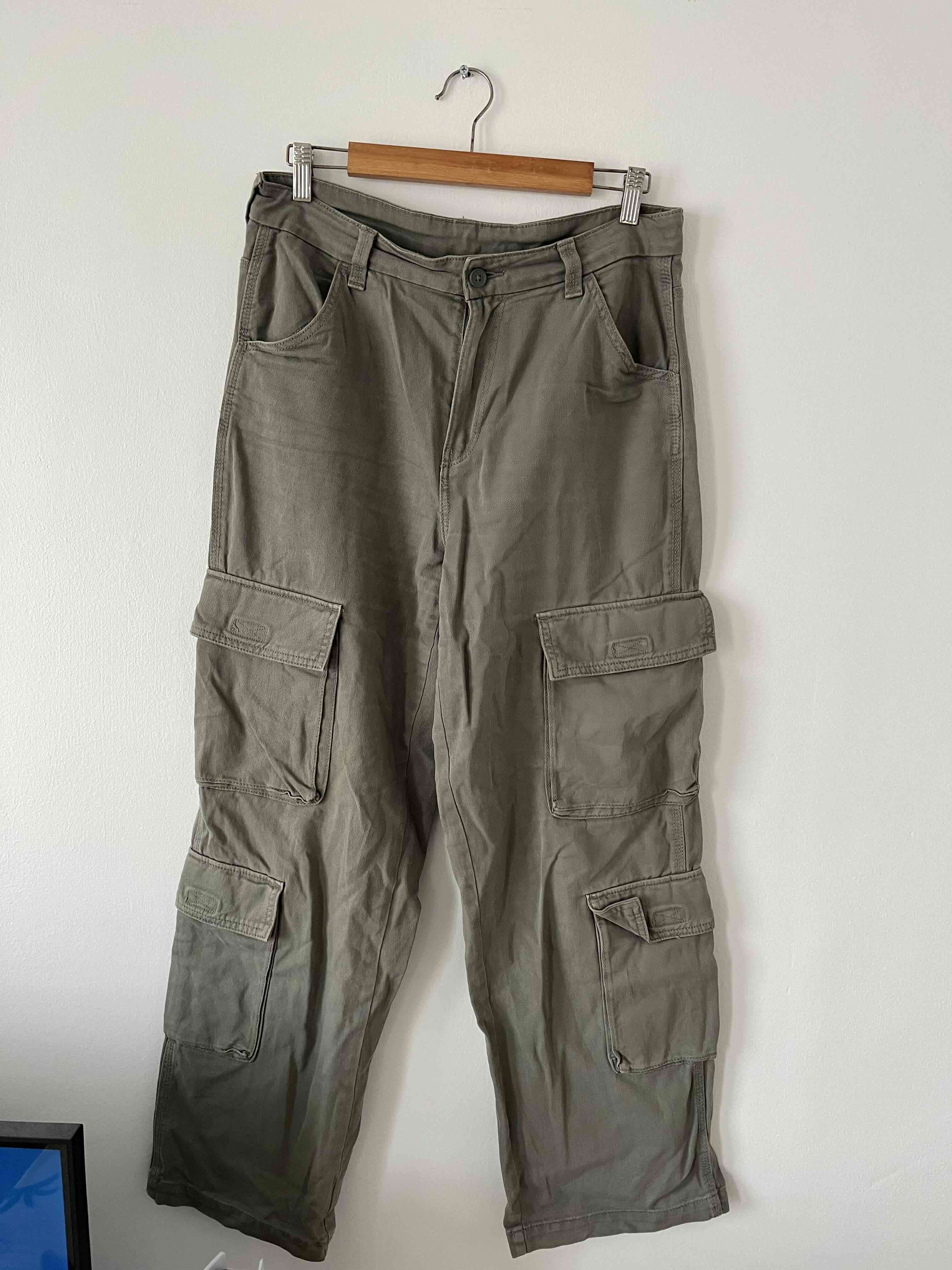 Pantalones cargo de estilo casual en color verde militar. Ideal para el día a día con múltiples bolsillos. En buenas condiciones.