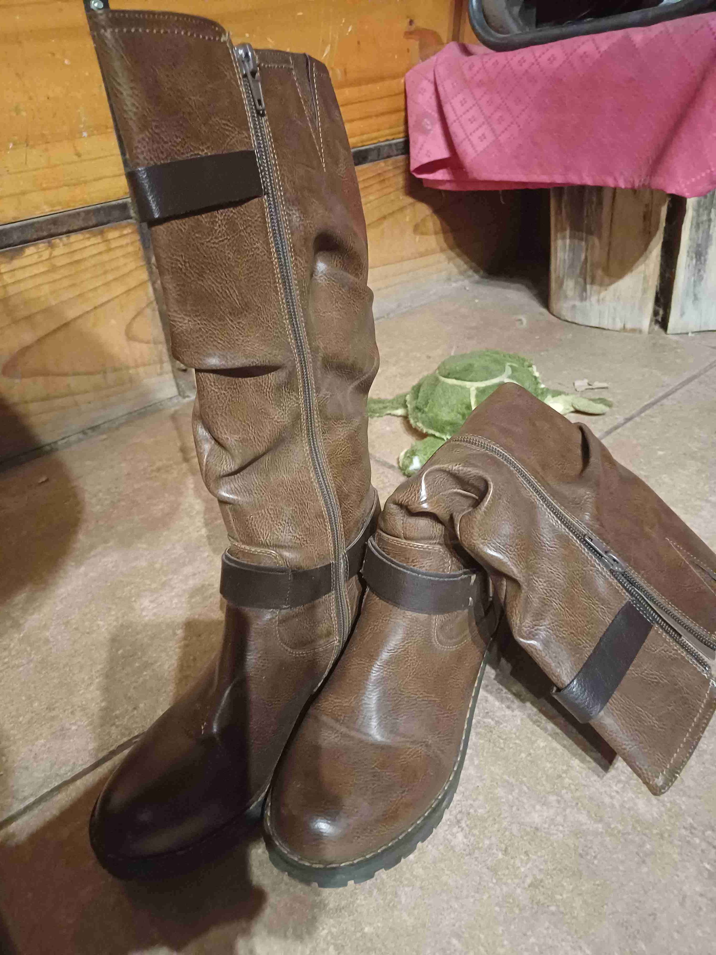 Botas de cuero sintético marrones con cremallera lateral. Ideales para el invierno, en buen estado con leves signos de uso.