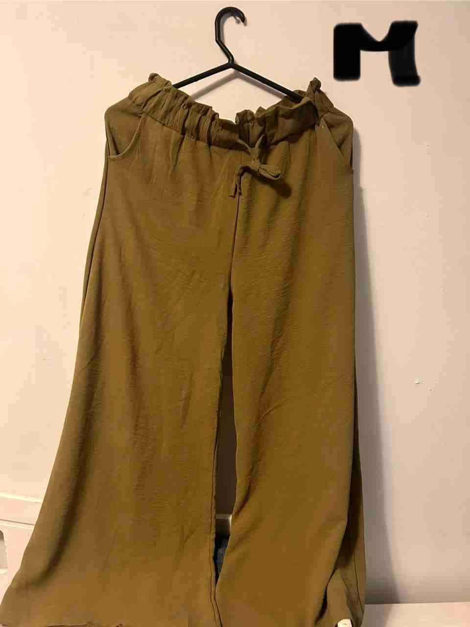 Pantalón amplio de tela ligera, color marrón. Talla M