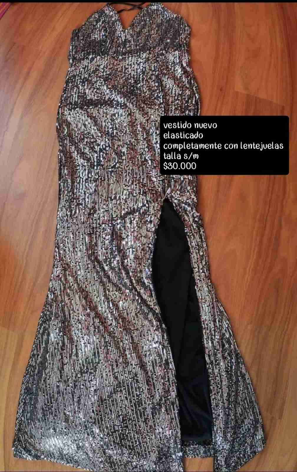 Elegante vestido largo con lentejuelas, ideal para eventos y celebraciones. Nuevo y elástico, en talla S/M.