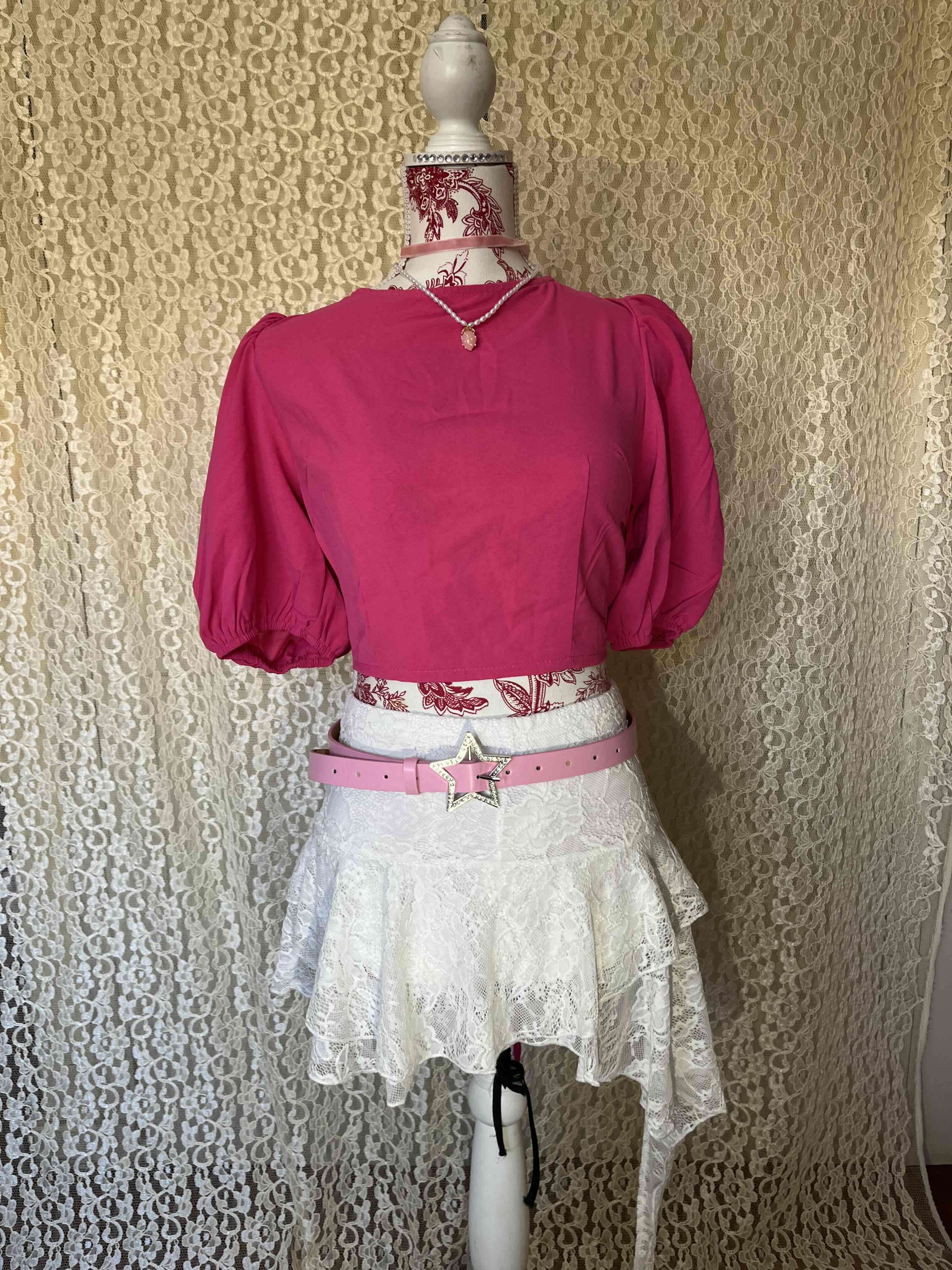 Blusa color rosa con mangas abullonadas, perfecta para un look casual o semiformal. En buen estado.