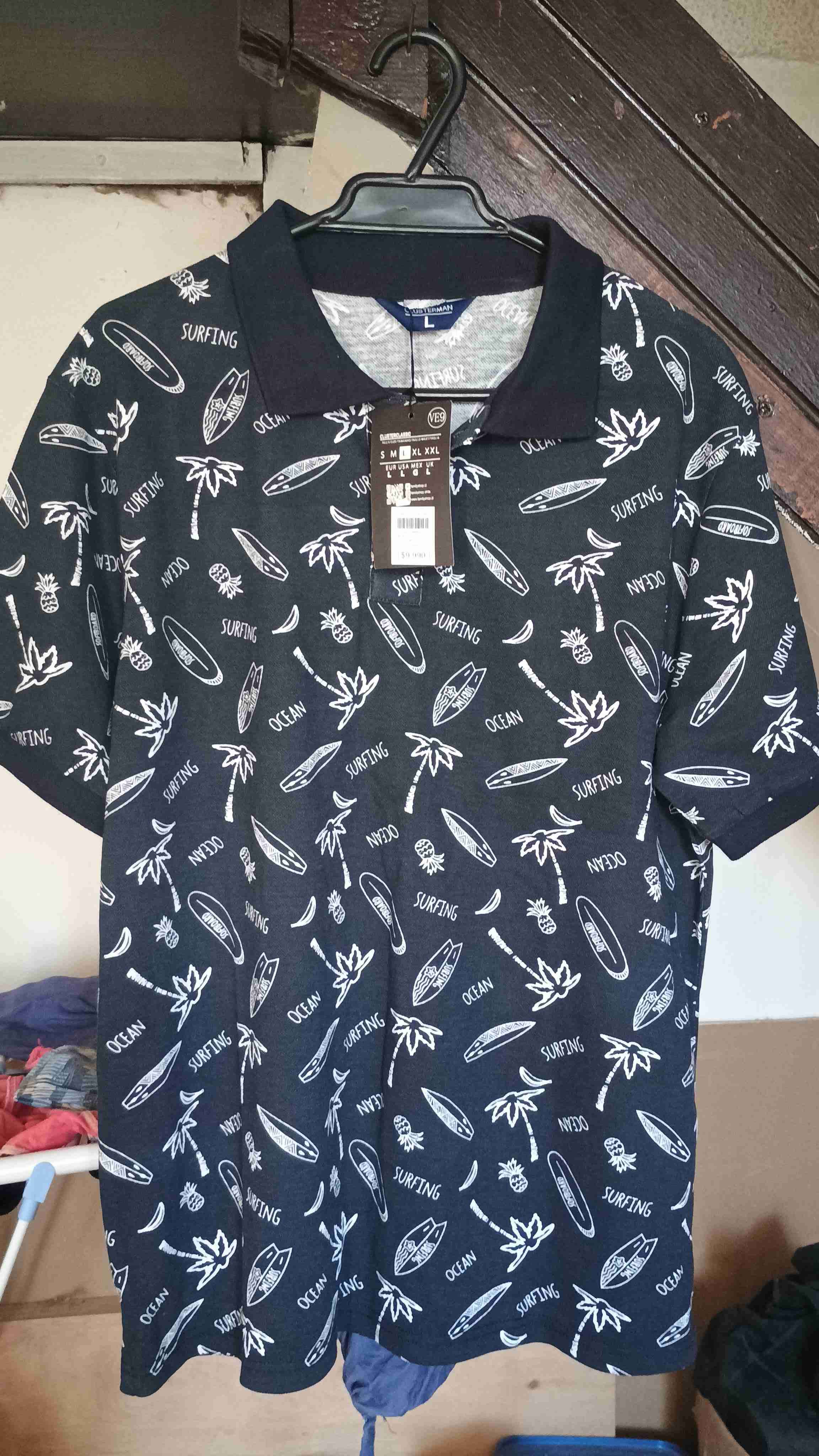 Polera polo negra con estampado de surf. Ideal para un look casual. Estado nuevo con etiqueta.talla m y l