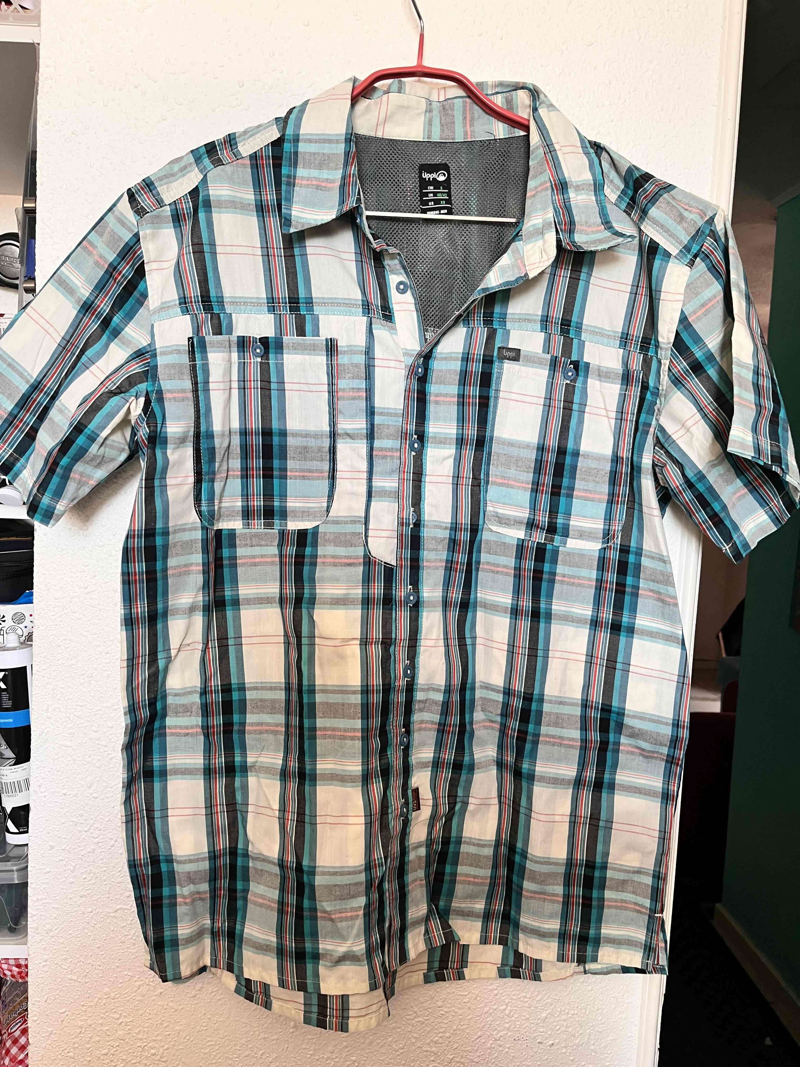 Camisa de hombre con diseño a cuadros en tonos azul y blanco. Excelente estado Marca Original Lippi. Dice talla S pero da para M es holgada.
