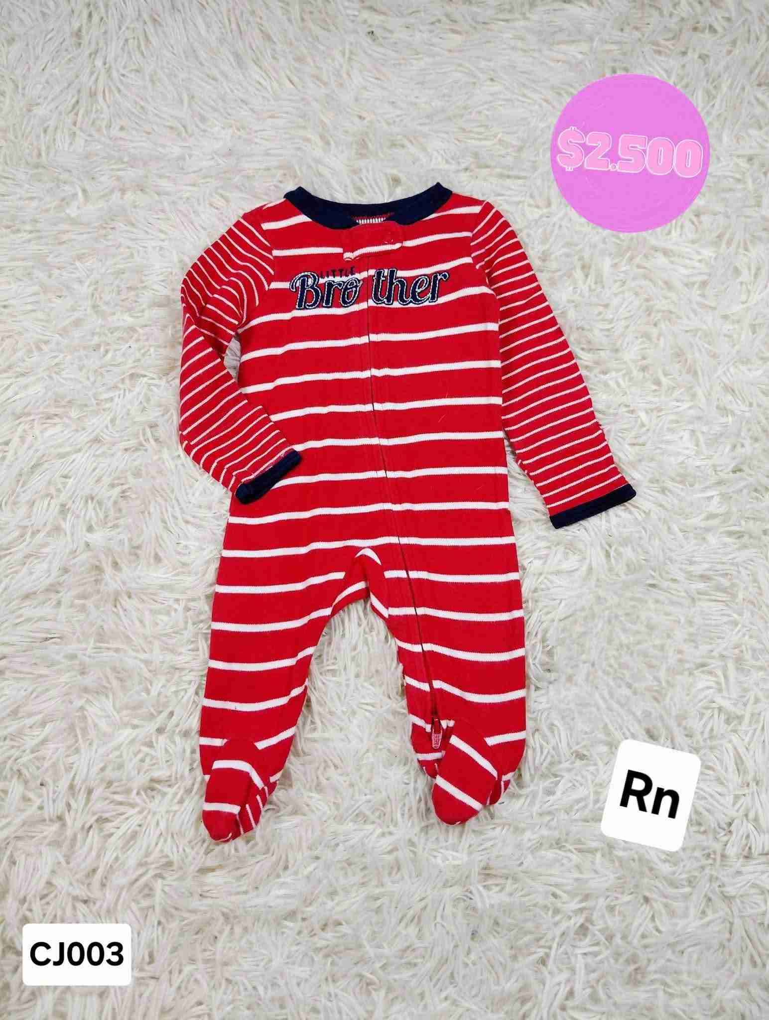 Enterito rojo con rayas blancas y texto "Little Brother". Ideal para recién nacidos, suave y cómodo.