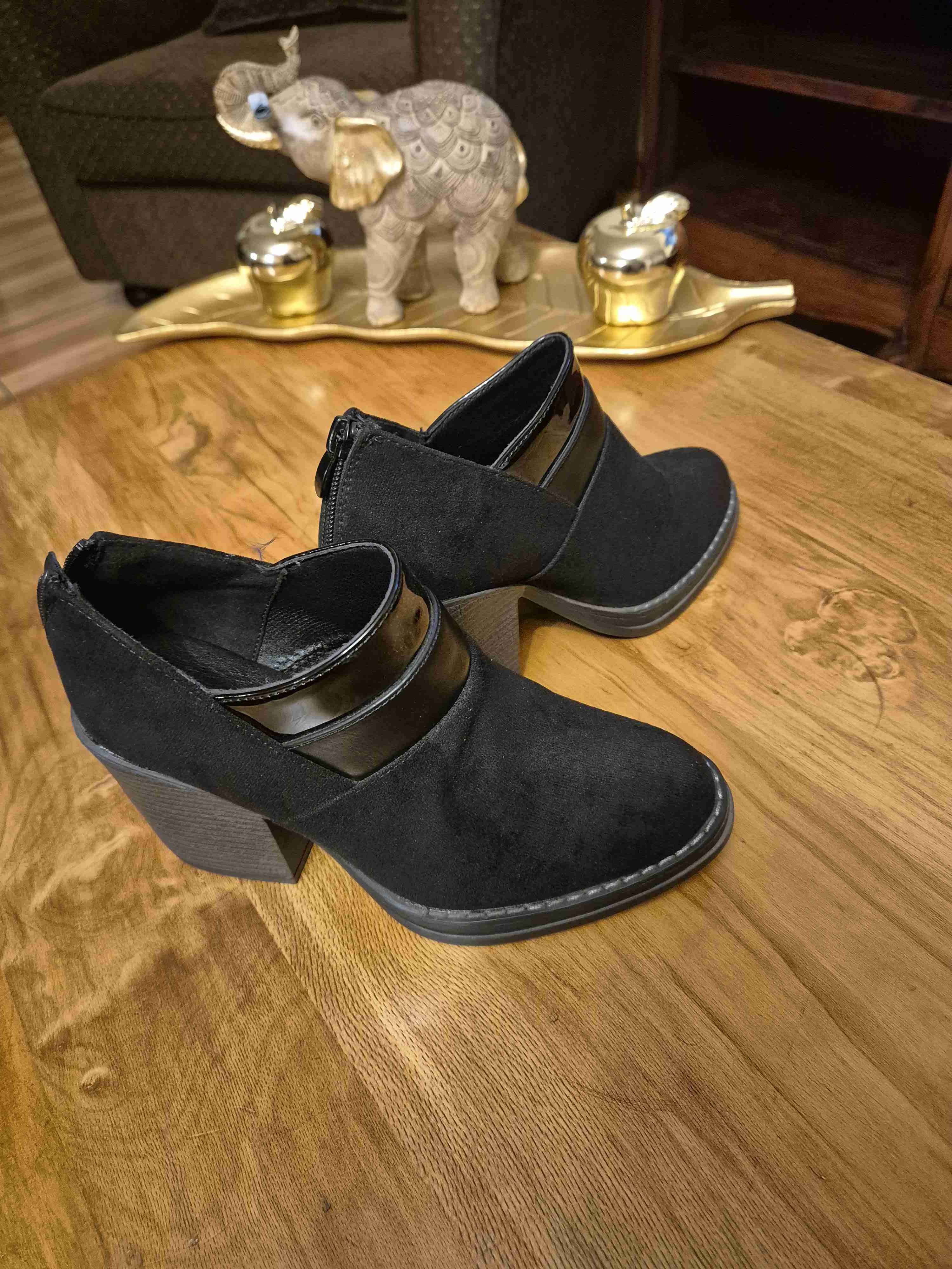 Elegantes botines negros de mujer, perfectos para ocasiones formales o casuales. En buen estado.