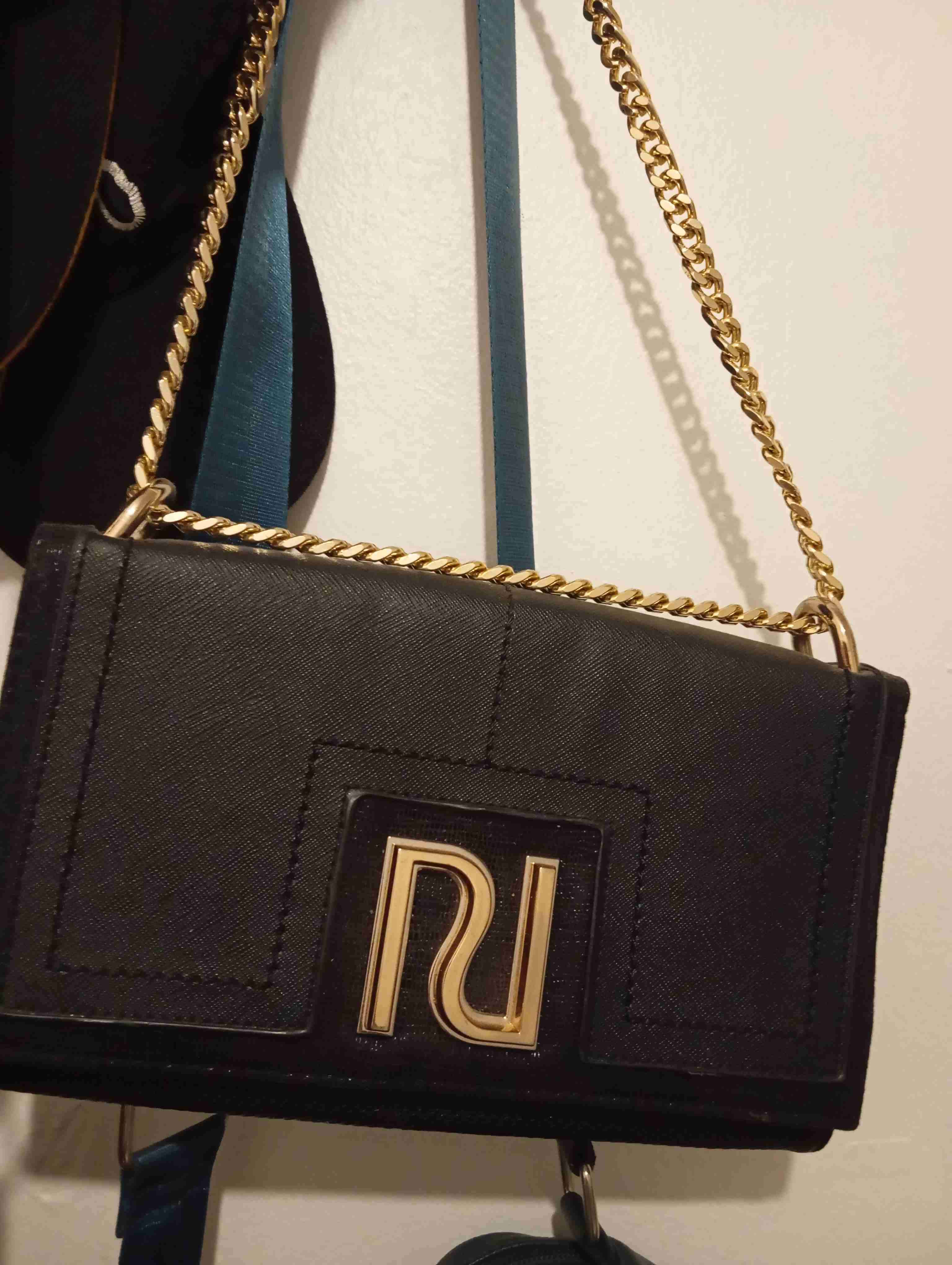 Cartera negra elegante con cadena dorada