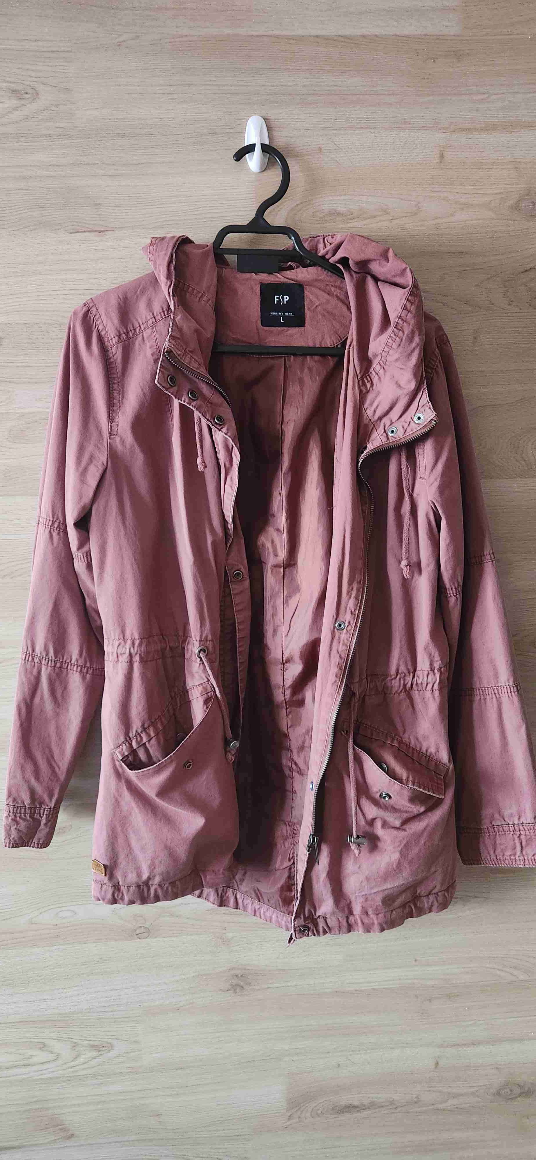 Chaqueta estilo parka en tono rosa, perfecta para el otoño. En buen estado, con bolsillos prácticos y capucha ajustable.