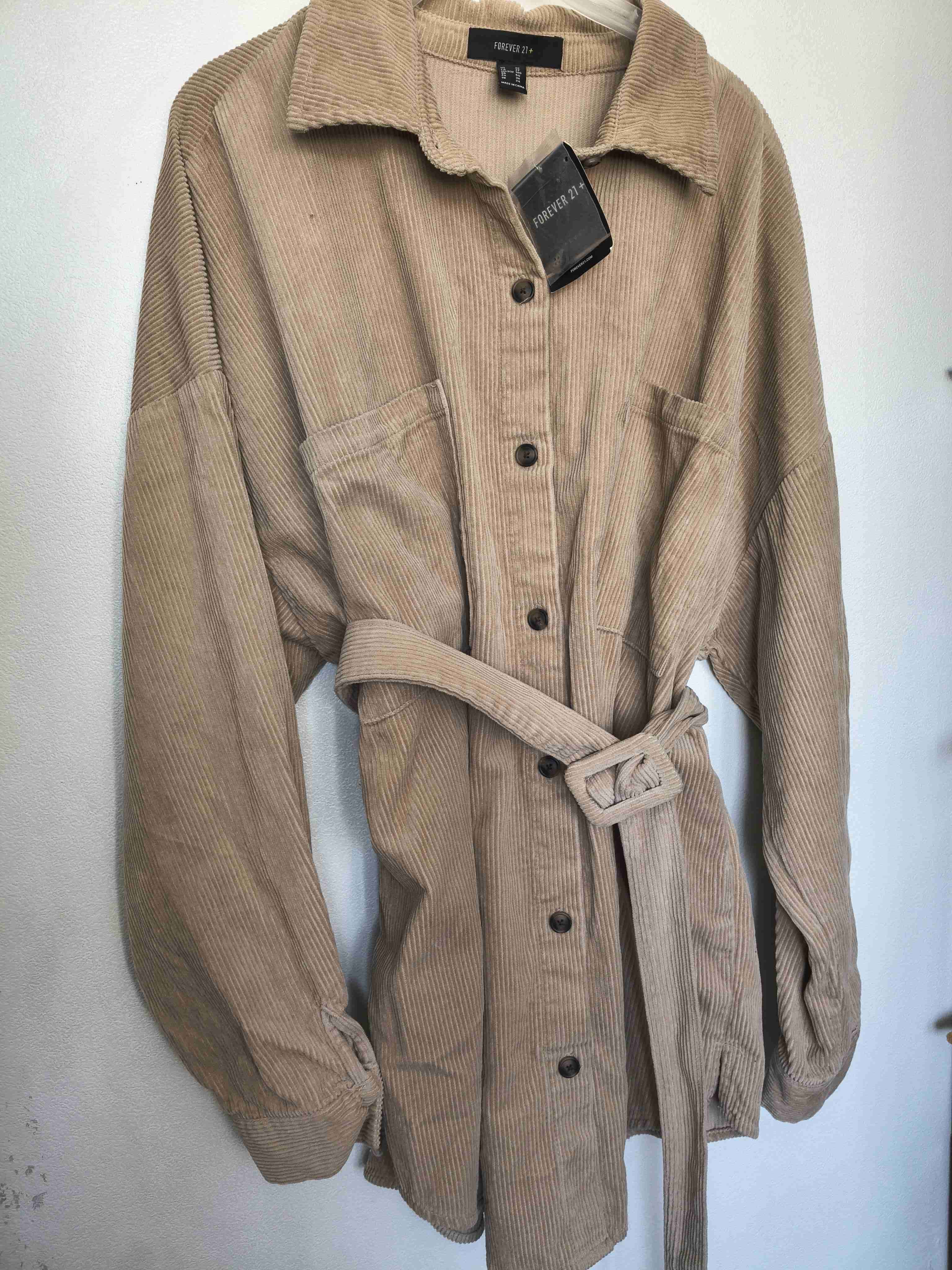 Chaqueta de pana beige con cinturón, estilo casual y relajado. Perfecta para el día a día. En excelente estado.