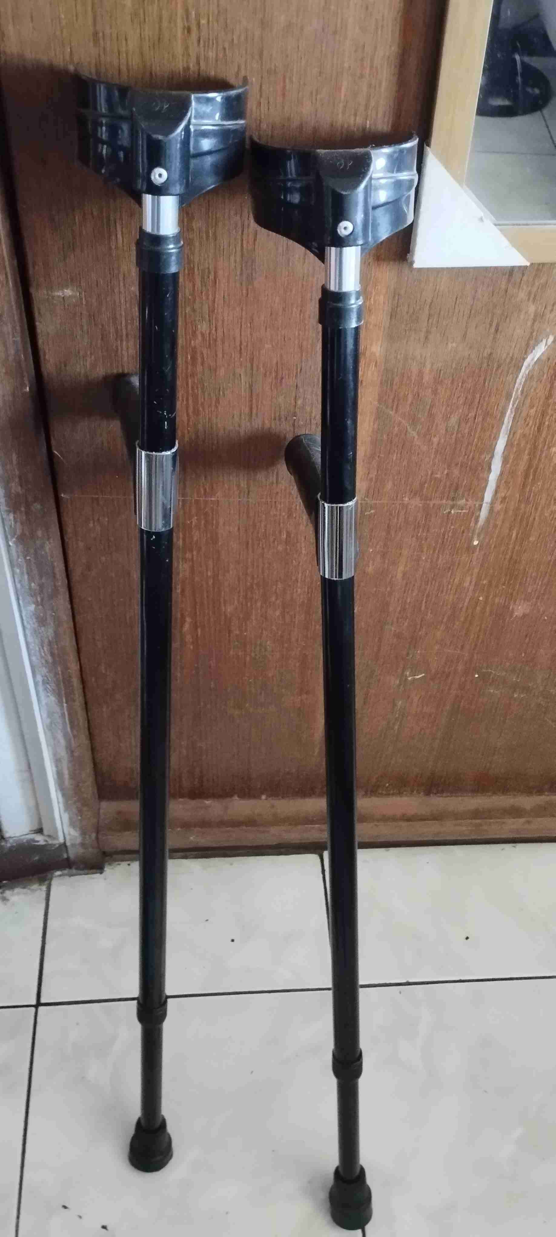 Par de muletas negras en buen estado, ideales para recuperación o movilidad asistida. Son ajustables para mayor comodidad.