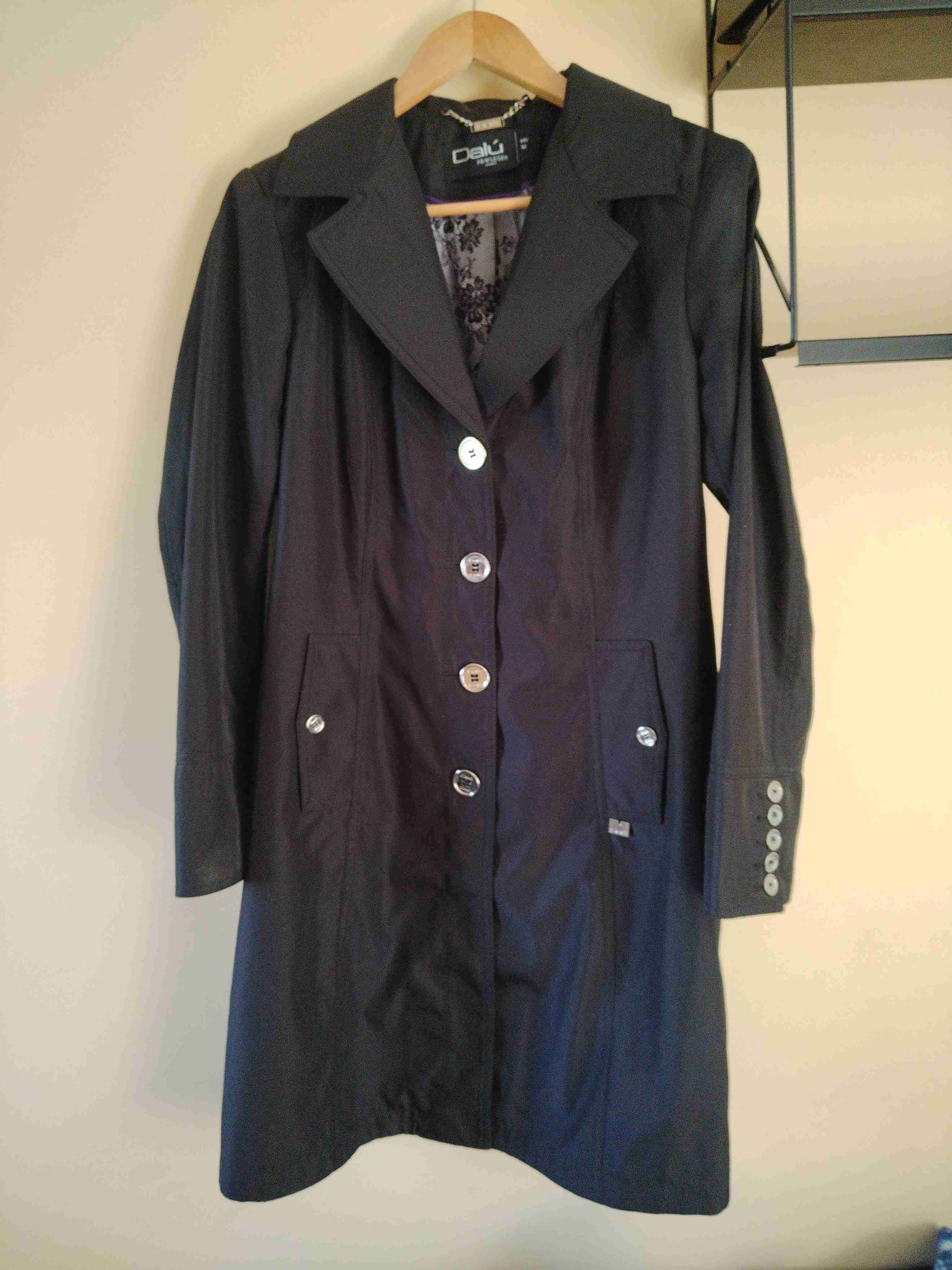 Abrigo negro de estilo clásico, ideal para el invierno. En buen estado con detalles elegantes.