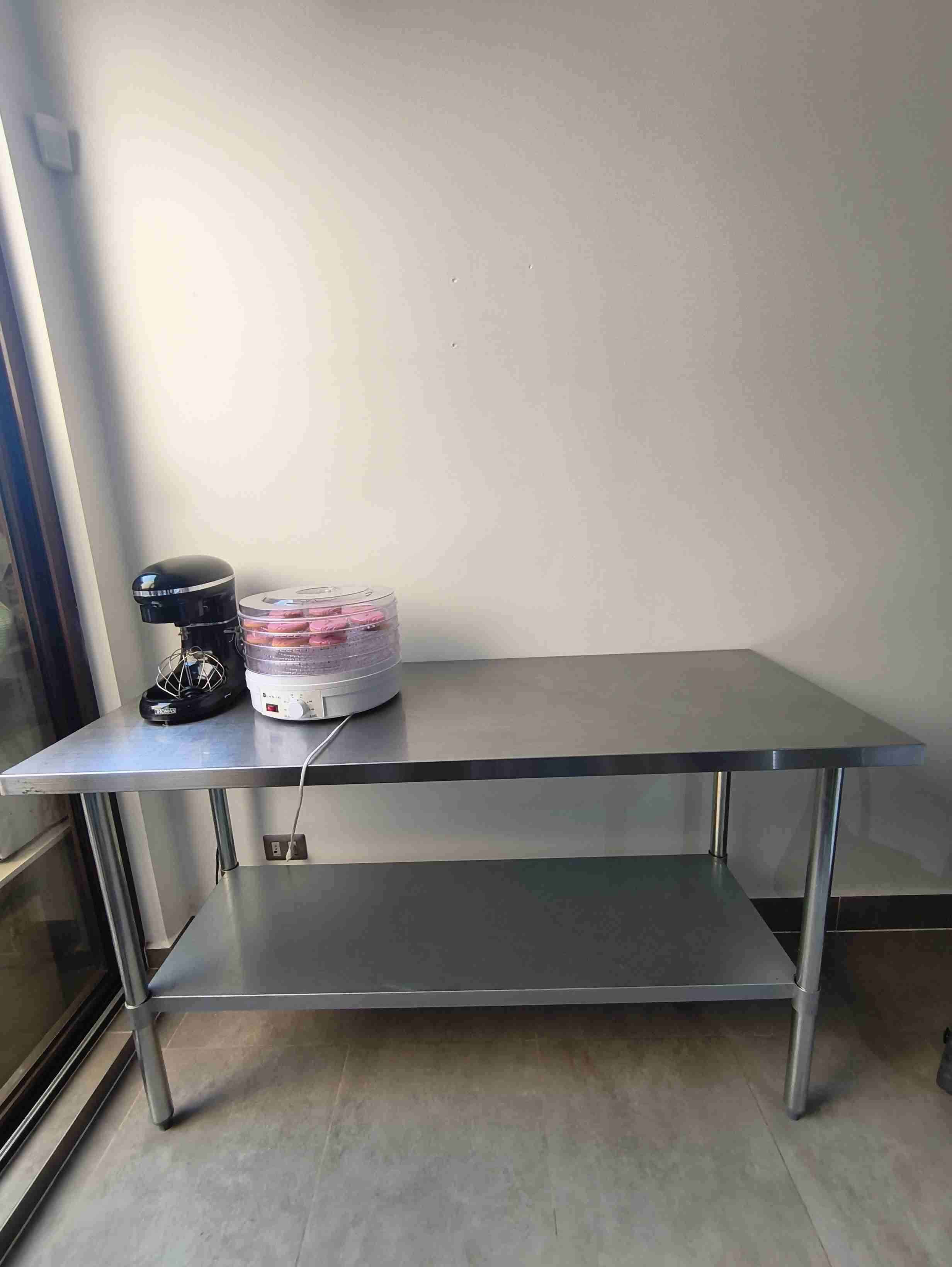Mesa de acero inoxidable, ideal para cocina u oficina. En buen estado, con dos niveles de almacenamiento. 150 x 60 x 90 de alto