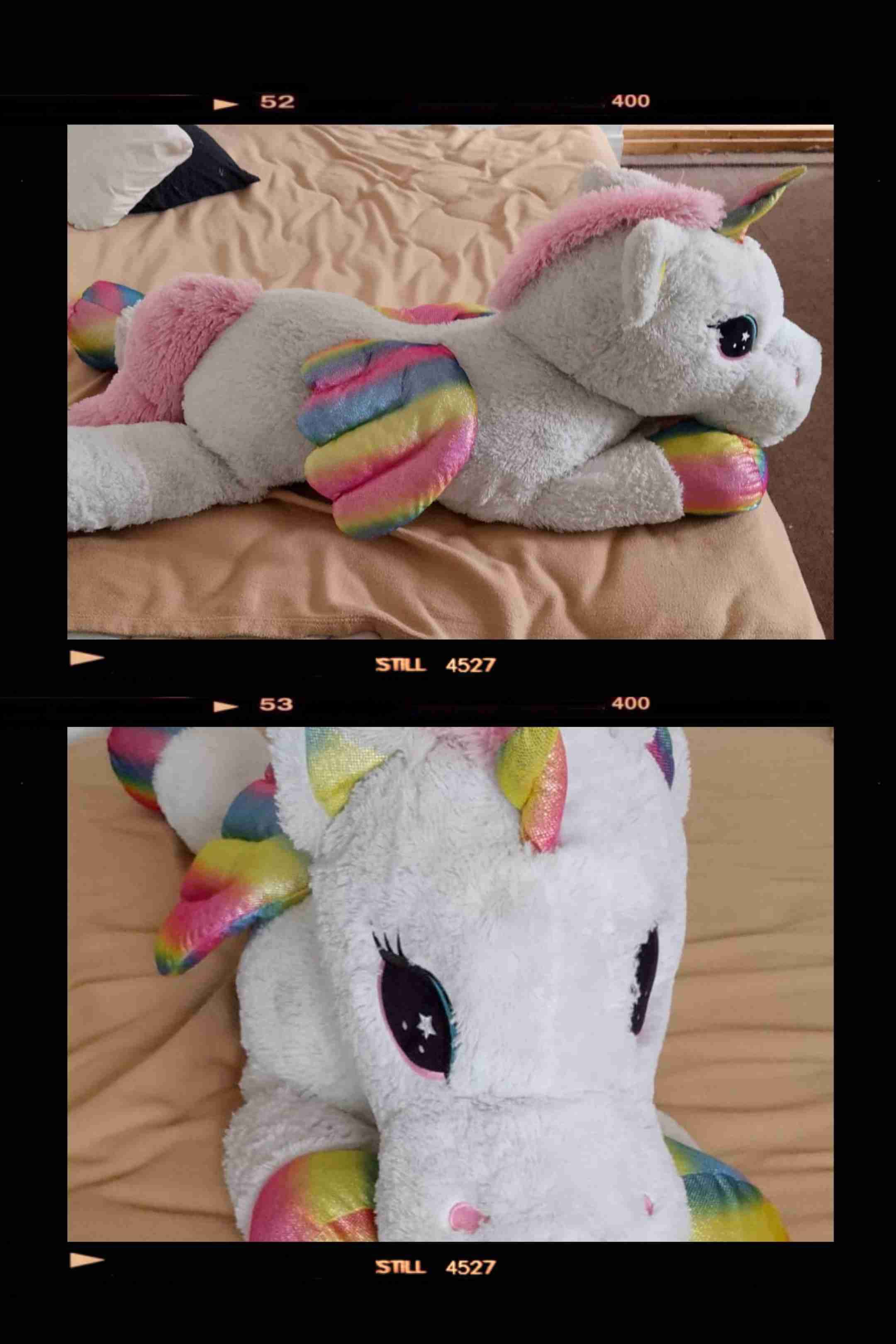 Este tierno peluche de unicornio con alas de arcoíris es suave y acogedor. Ideal para la habitación de los niños o como regalo especial.