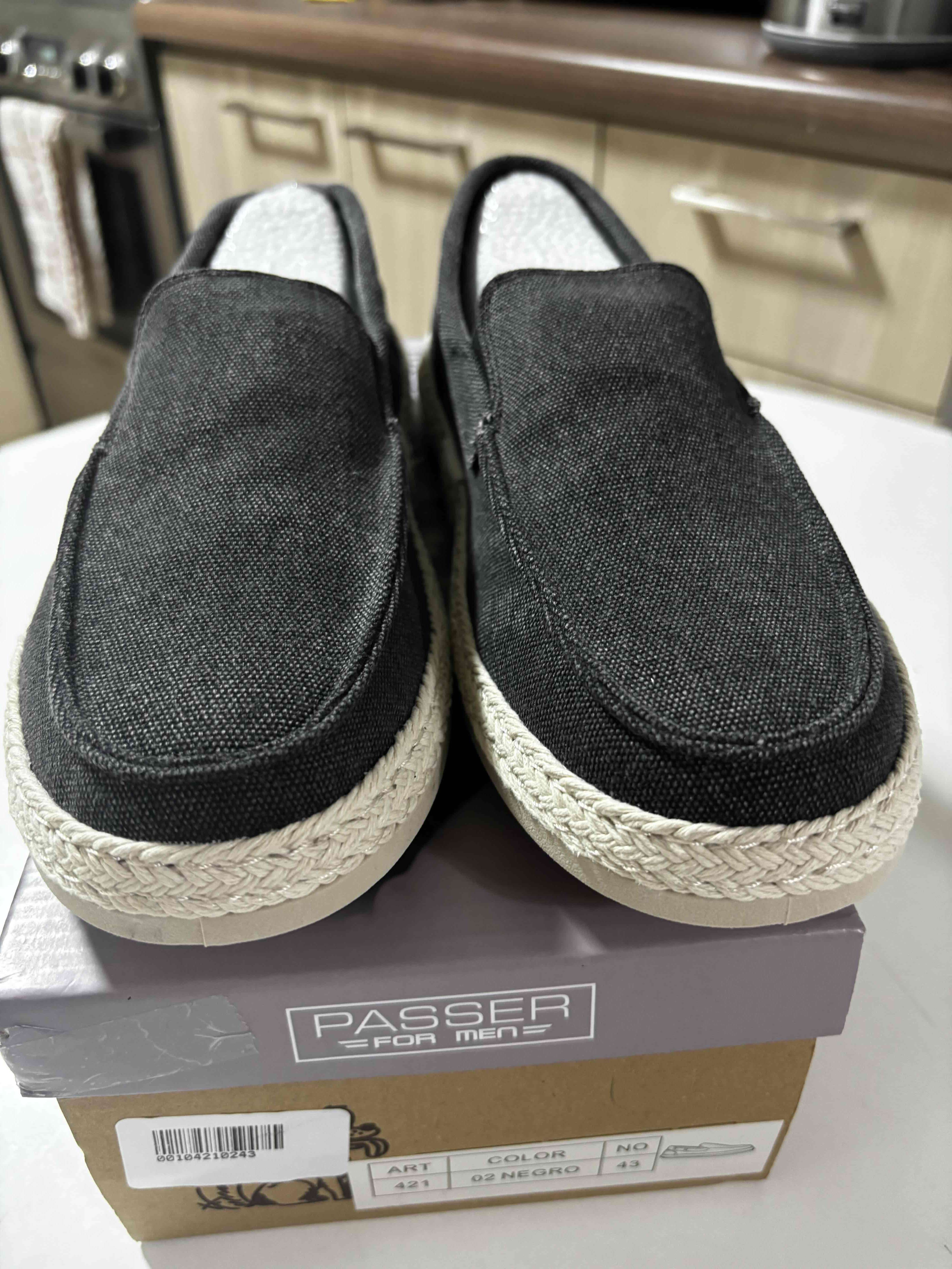 Mocasín de estilo casual, negros con suela de yute. Ideales para un look relajado