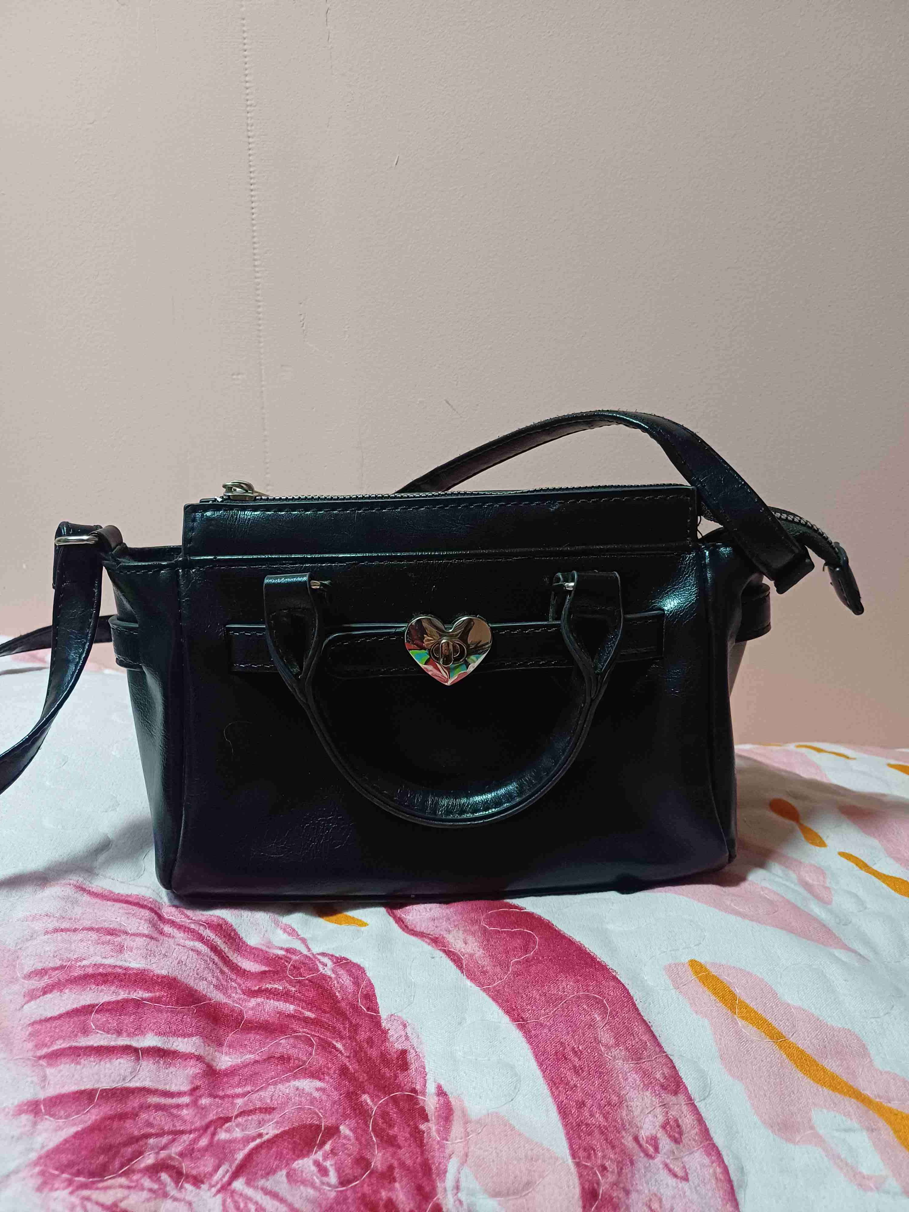 Elegante bolso negro con detalle de corazón metálico. Perfecto para el uso diario. En buen estado.