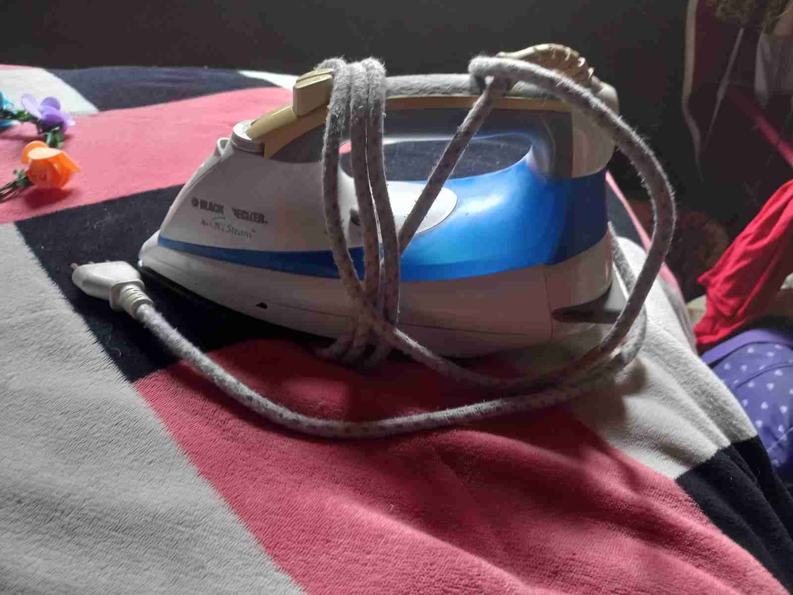 Plancha a vapor en buen estado, ideal para ropa delicada. Cable ligeramente desgastado.