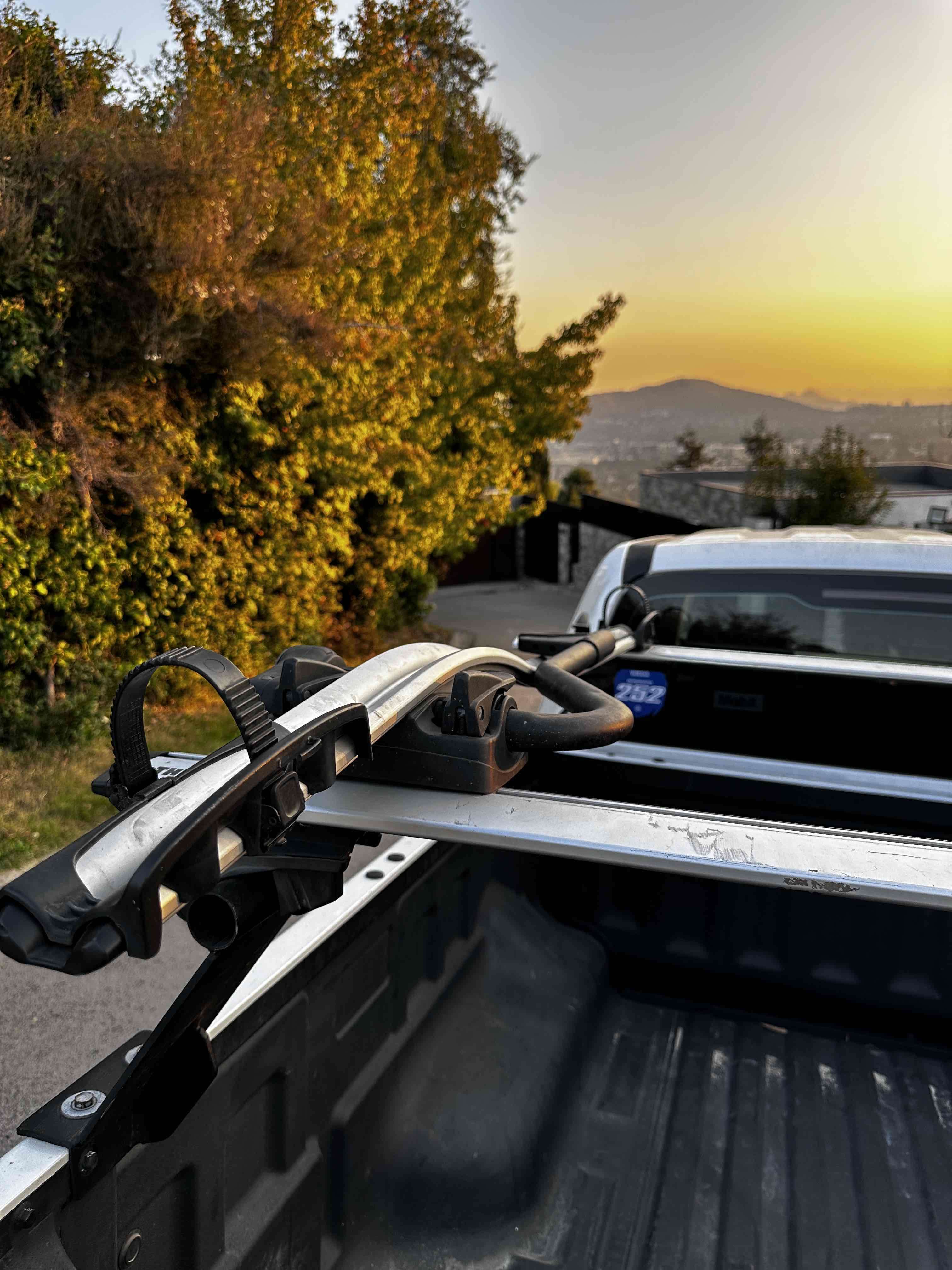 Portabicicletas montado sobre el techo, ideal para viajes. En buen estado general, con poco uso marca Thule