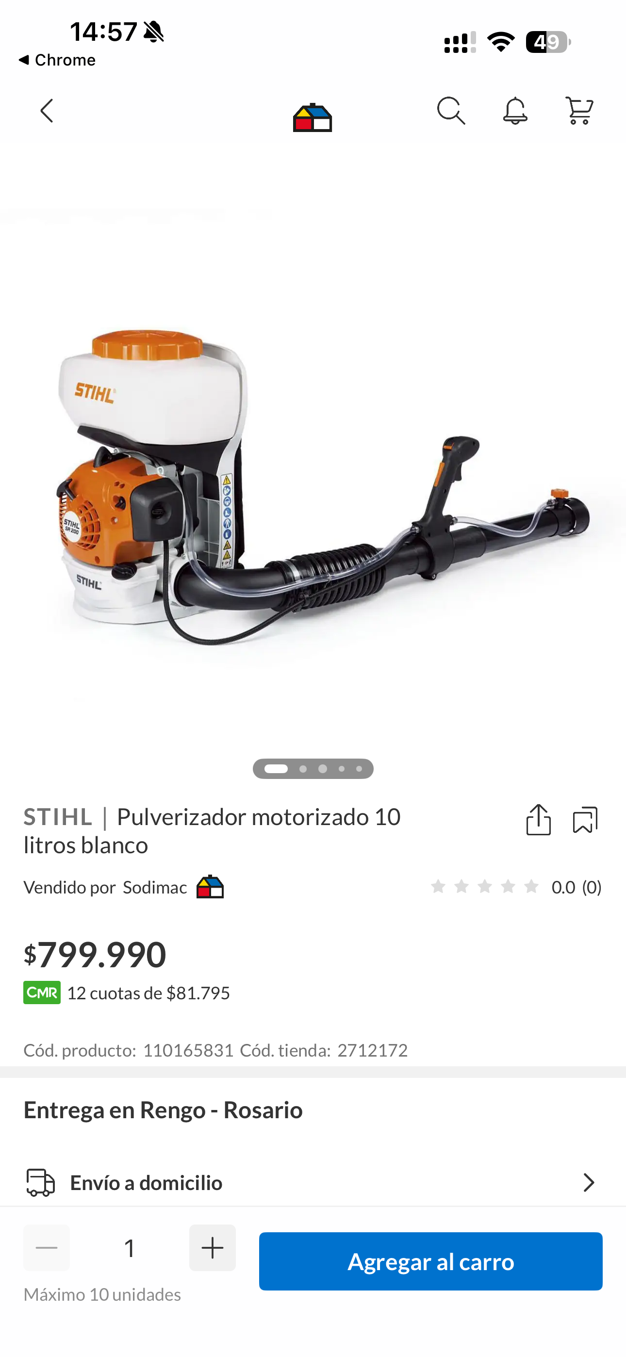 Pulverizador motorizado de 10 litros, ideal para aplicaciones agrícolas y de jardinería. Estado nuevo.