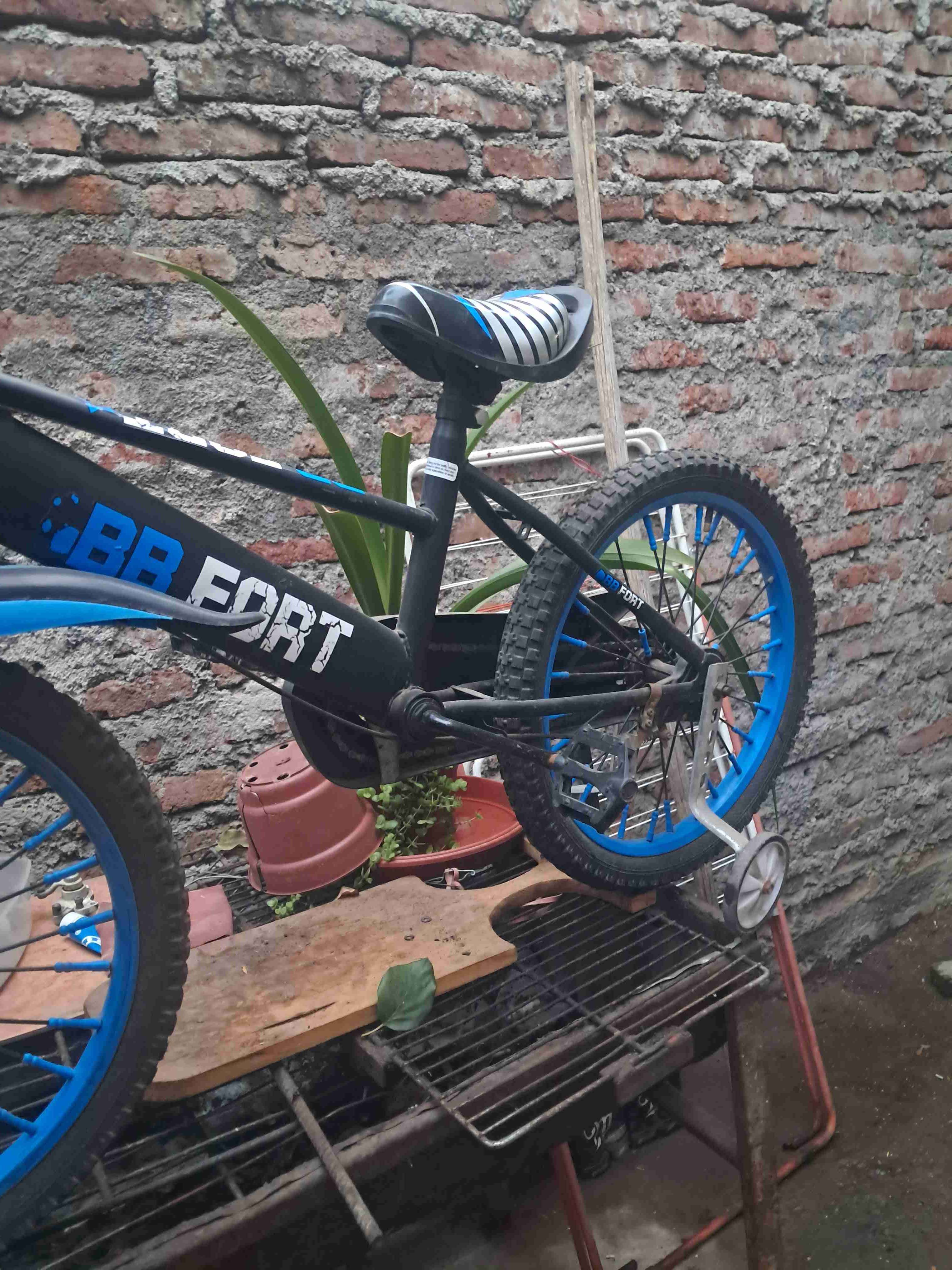 Bicicleta para niño en buen estado, ideal para aprender a pedalear. Incluye rueditas estabilizadoras y diseño deportivo.