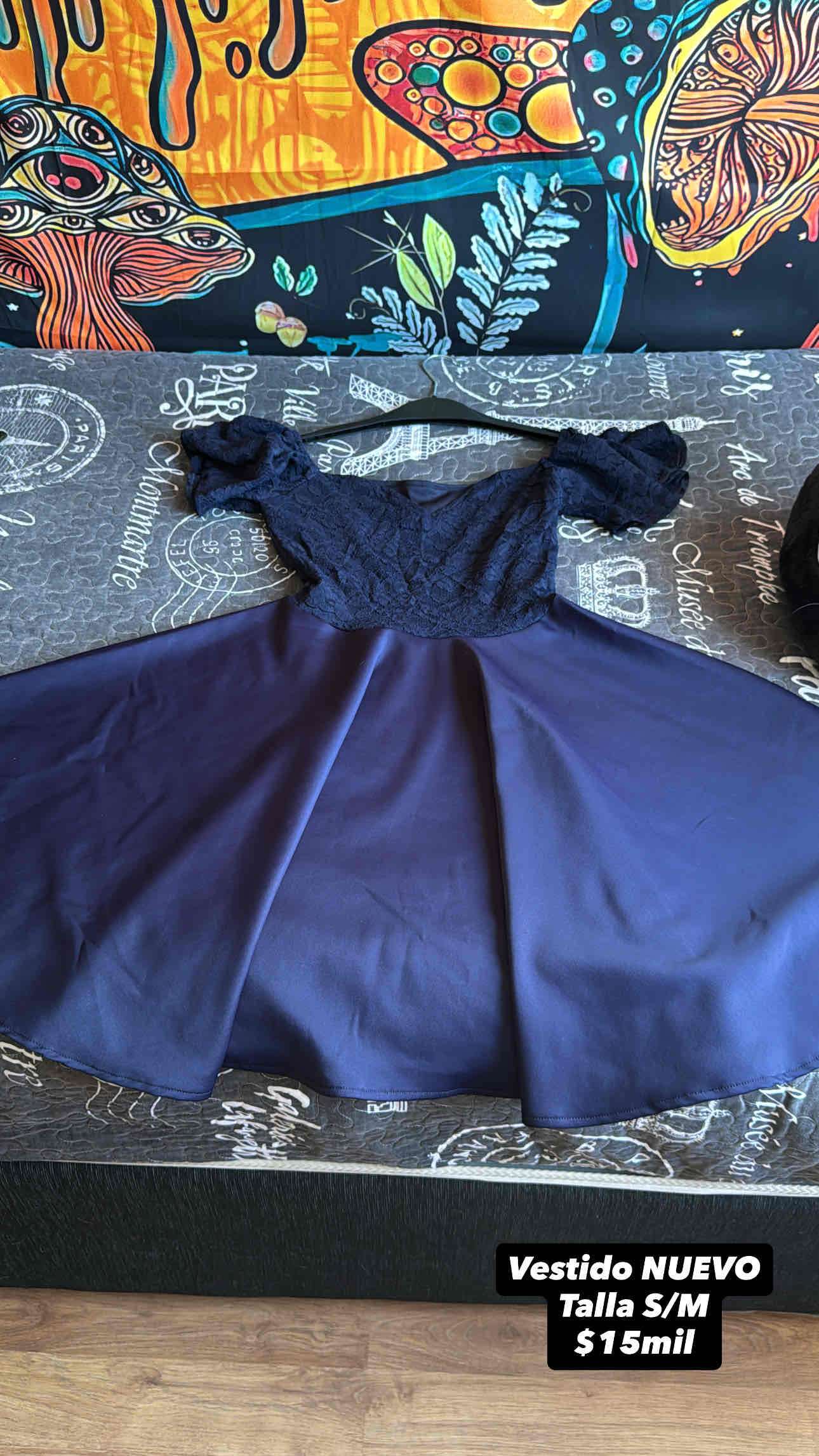 Elegante vestido azul con detalles de encaje. Ideal para ocasiones especiales. Estado impecable.