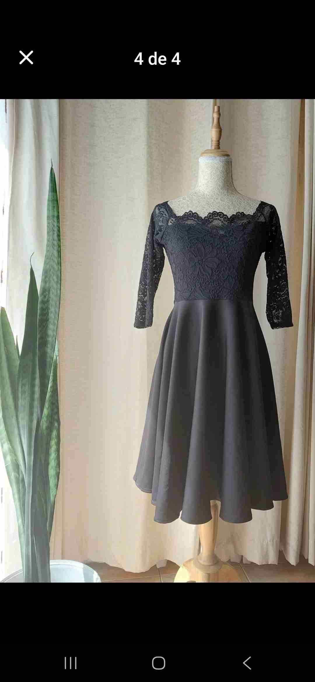 Vestido negro elegante con encaje en el busto y mangas. Ideal para eventos formales o salidas nocturnas. Talla 40 aprox Excelente estado!!