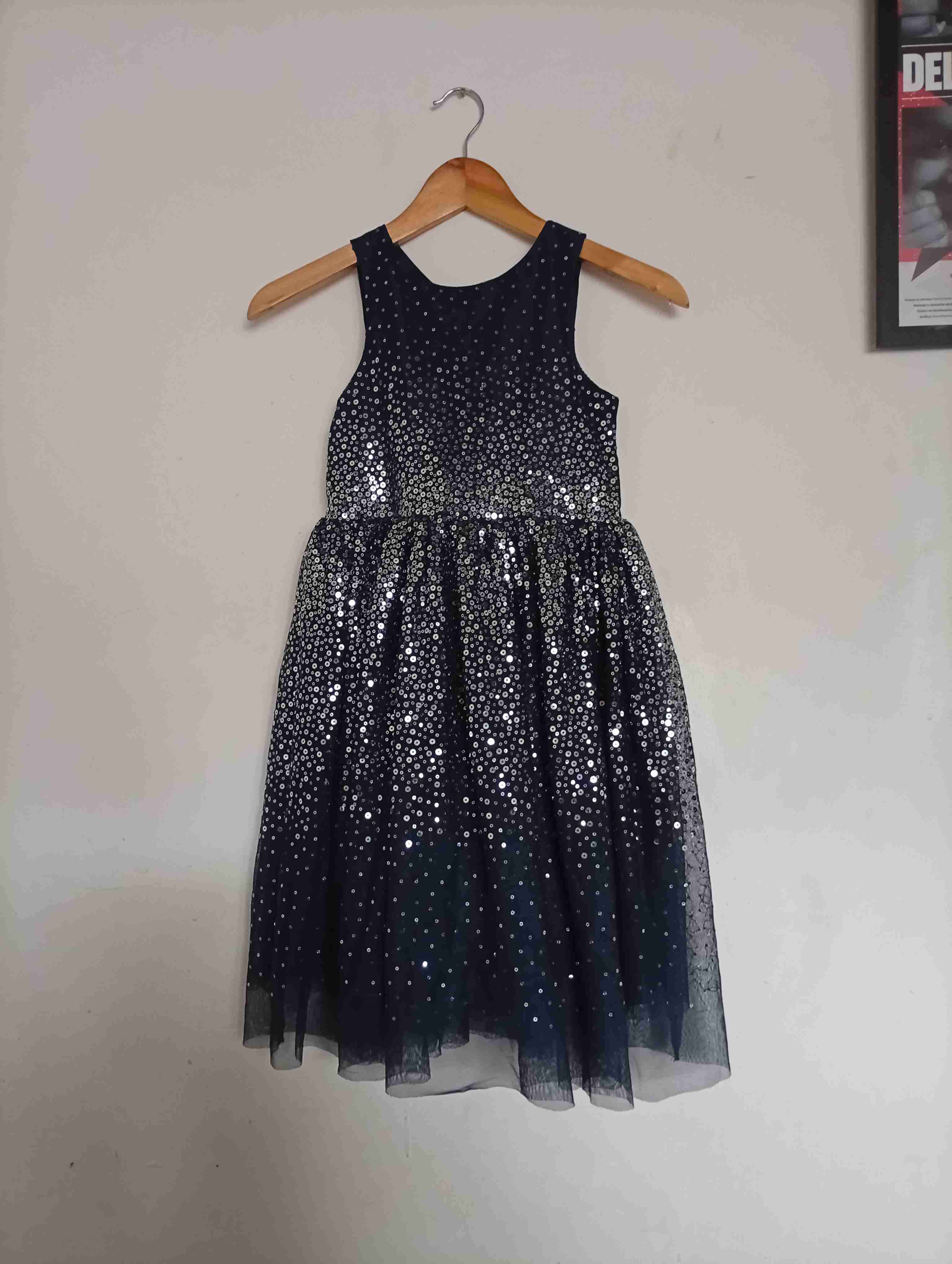 Elegante vestido de fiesta niña con diseño de lentejuelas brillantes. Muy bien estado.