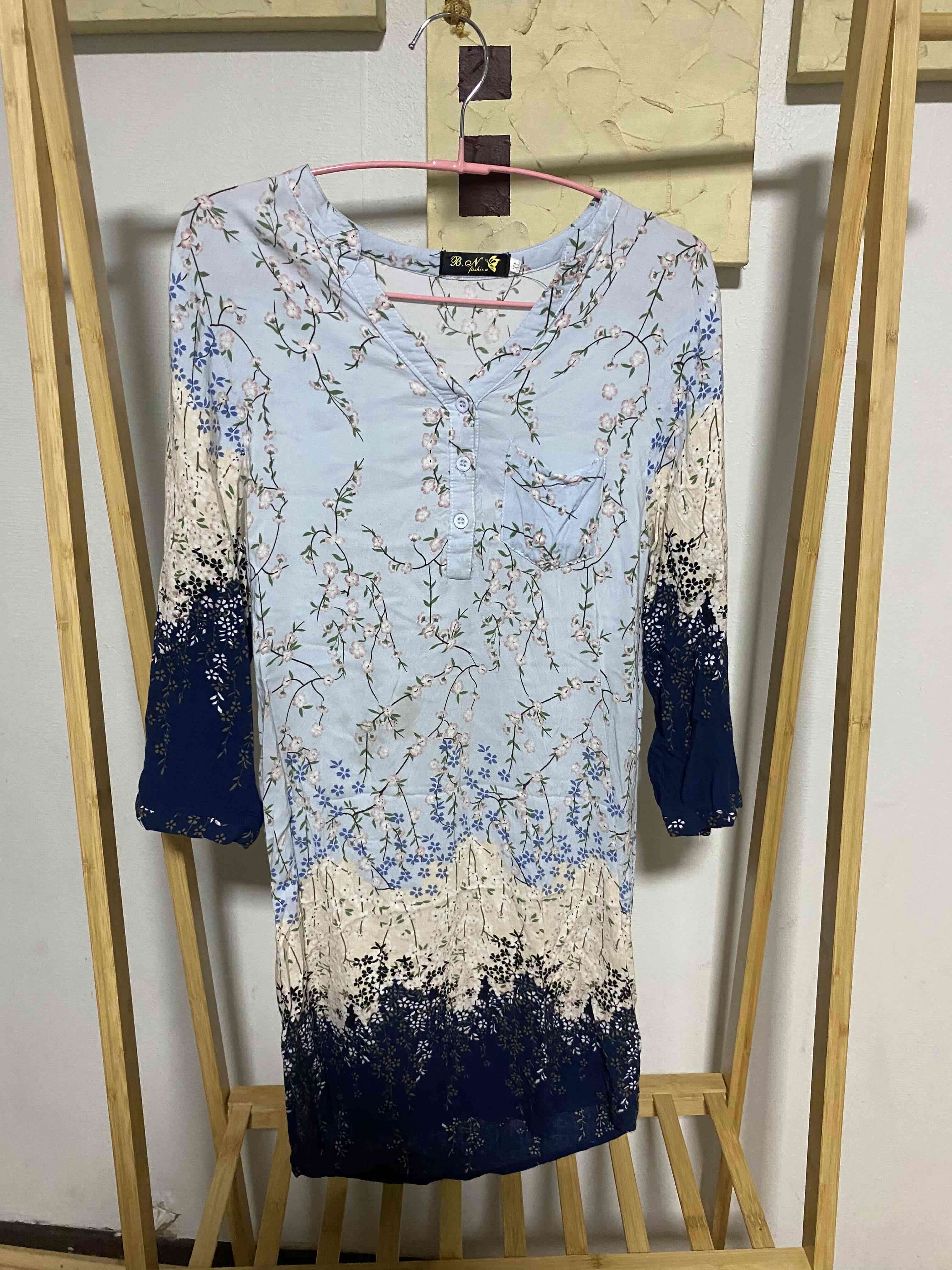 Vestido con diseño floral en tonos azules, ideal para ocasiones casuales. En buen estado, perfecto para días de primavera.