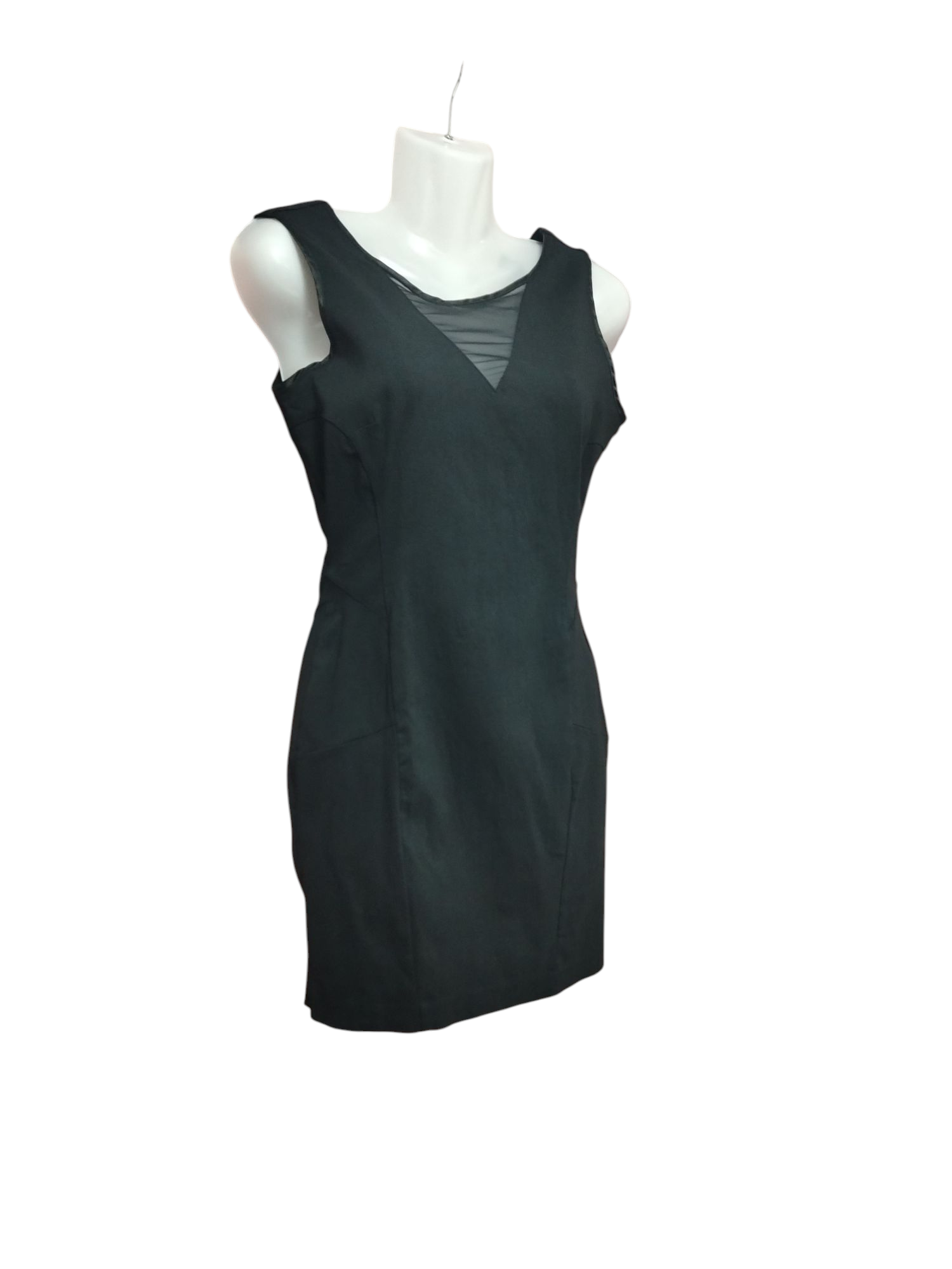 Vestido negro sin mangas, con transparencia en el pecho. Marca JJO Talla S.