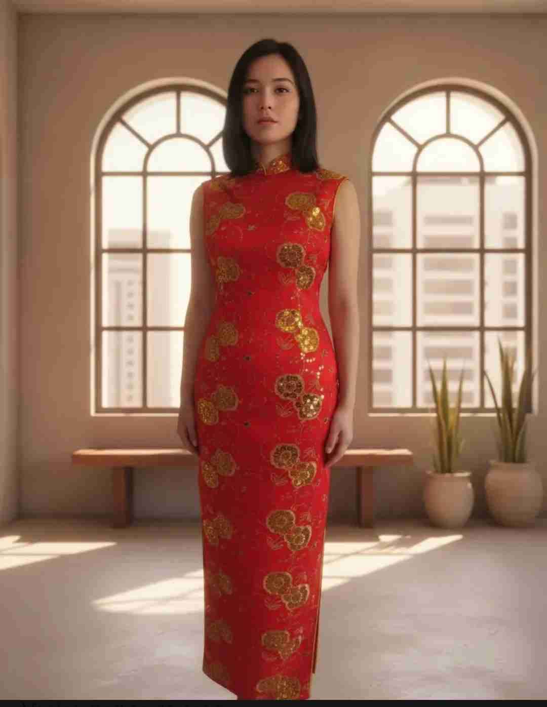 Vestido kimono rojo con lentejuelas bordado. ideal para eventos formales. En excelente estado Nuevo sin uso Talla xs